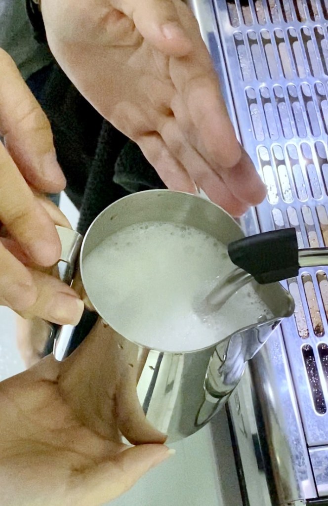 Moving on to frothing. I find that frothing is the hardest cos you need to have the perfect foam and temperature. We were taught to get the temperature right by our touch and clearly all of us had very thin skin