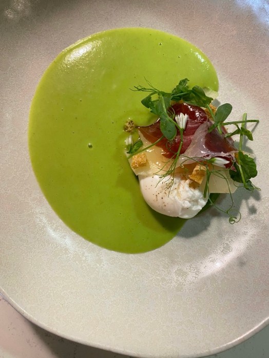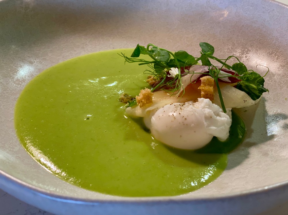 Vichyssoise of Spring Vegetables, Poached Poulet Egg, Lacto Fermented White Asparagus