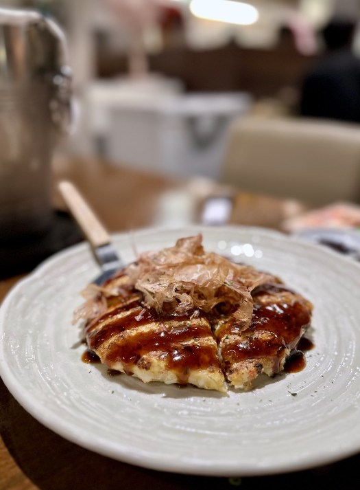 They serve both Okonomiyaki and Monjyayaki but after contemplating, I decided to go with the former. The Okonomiyaki was delicious. With the right batter, cooked just right and generous portion of seafood, I say it’s quite a pretty decent one you could find in Singapore
