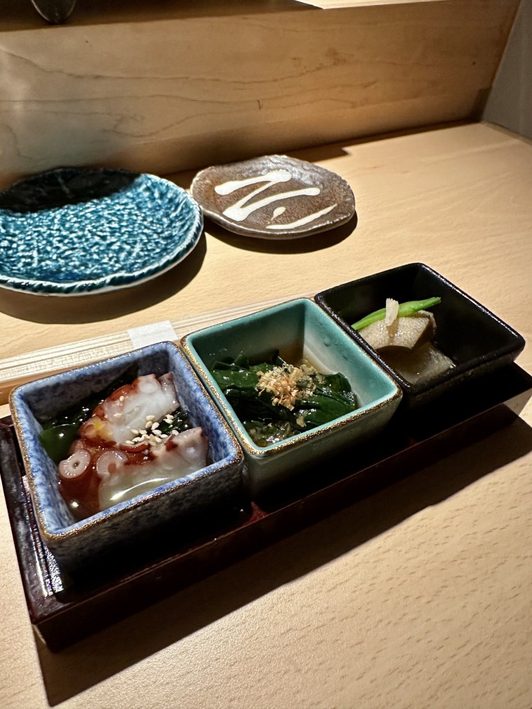 Appetiser: Tako with Vinegar, Spinach, Fish w White Radish