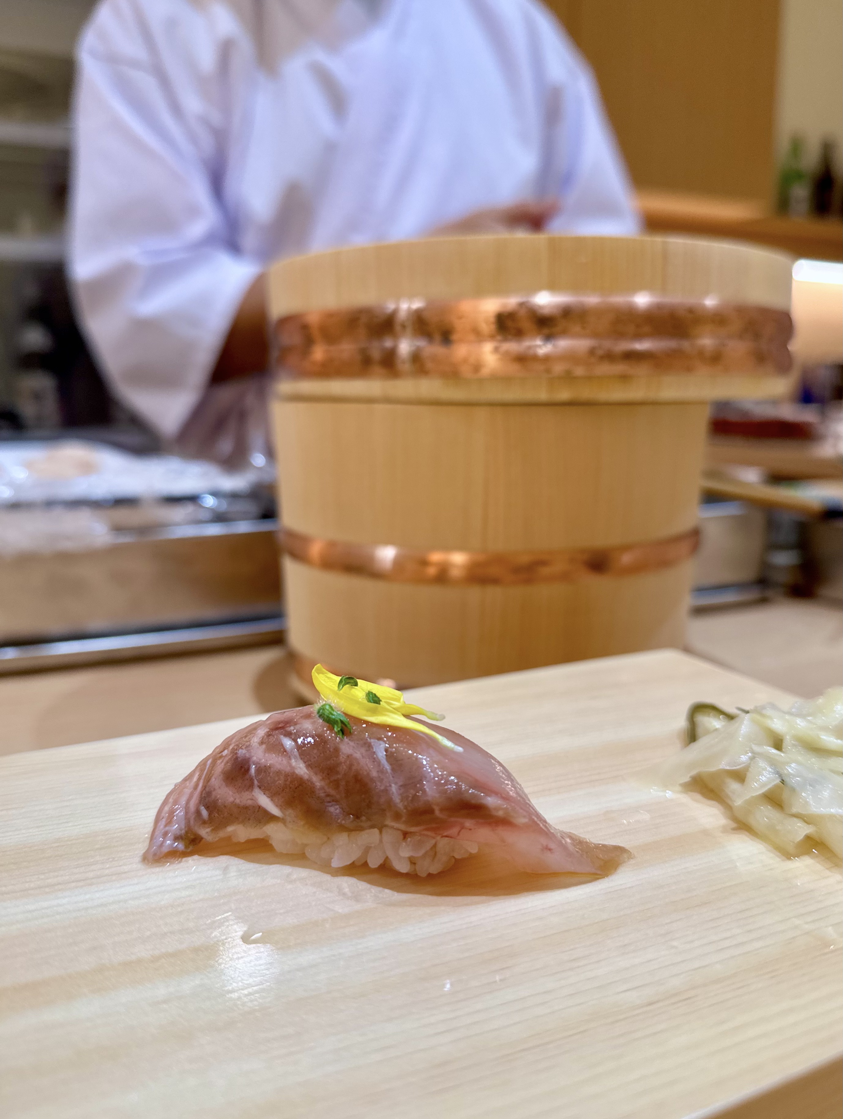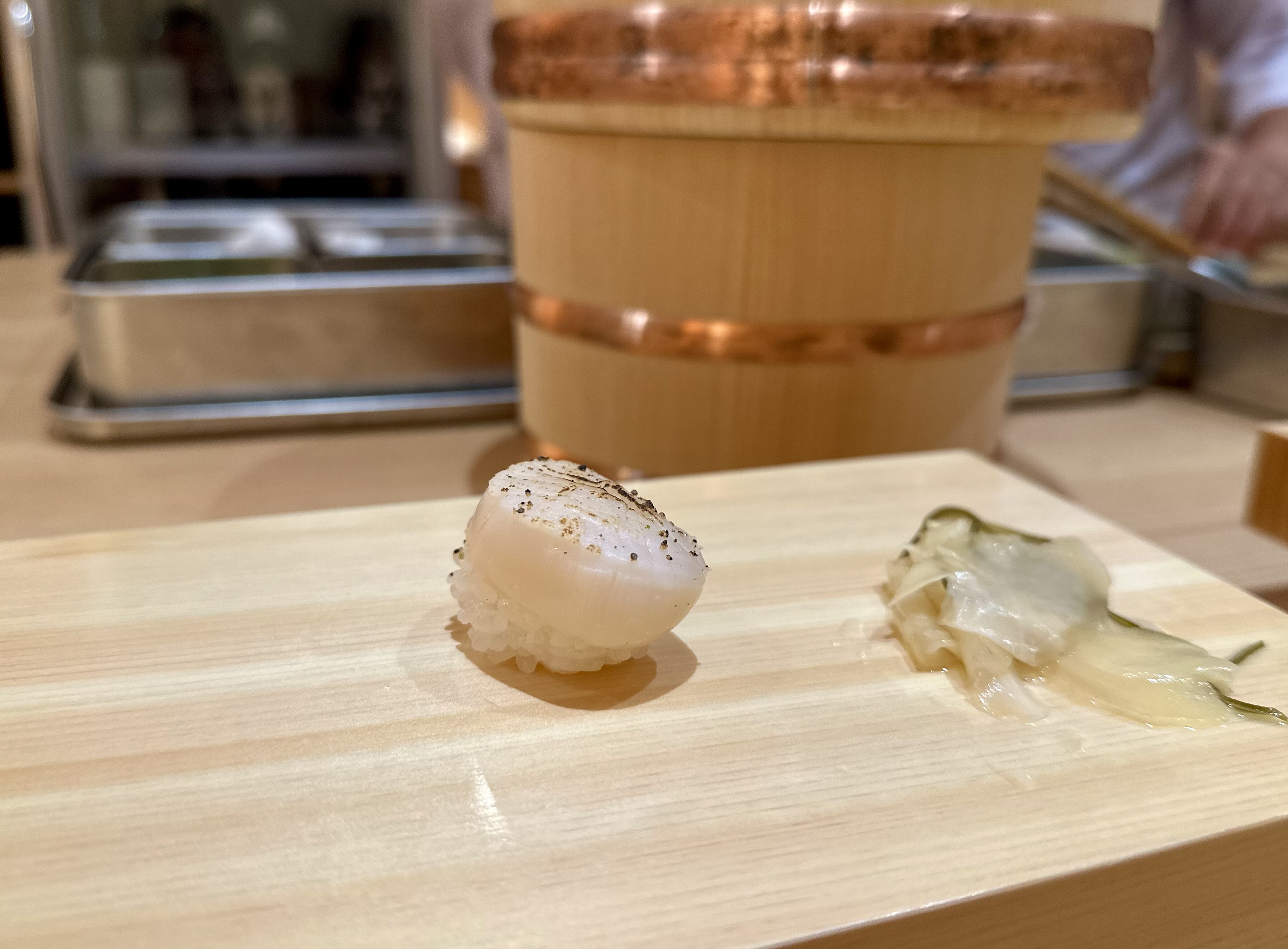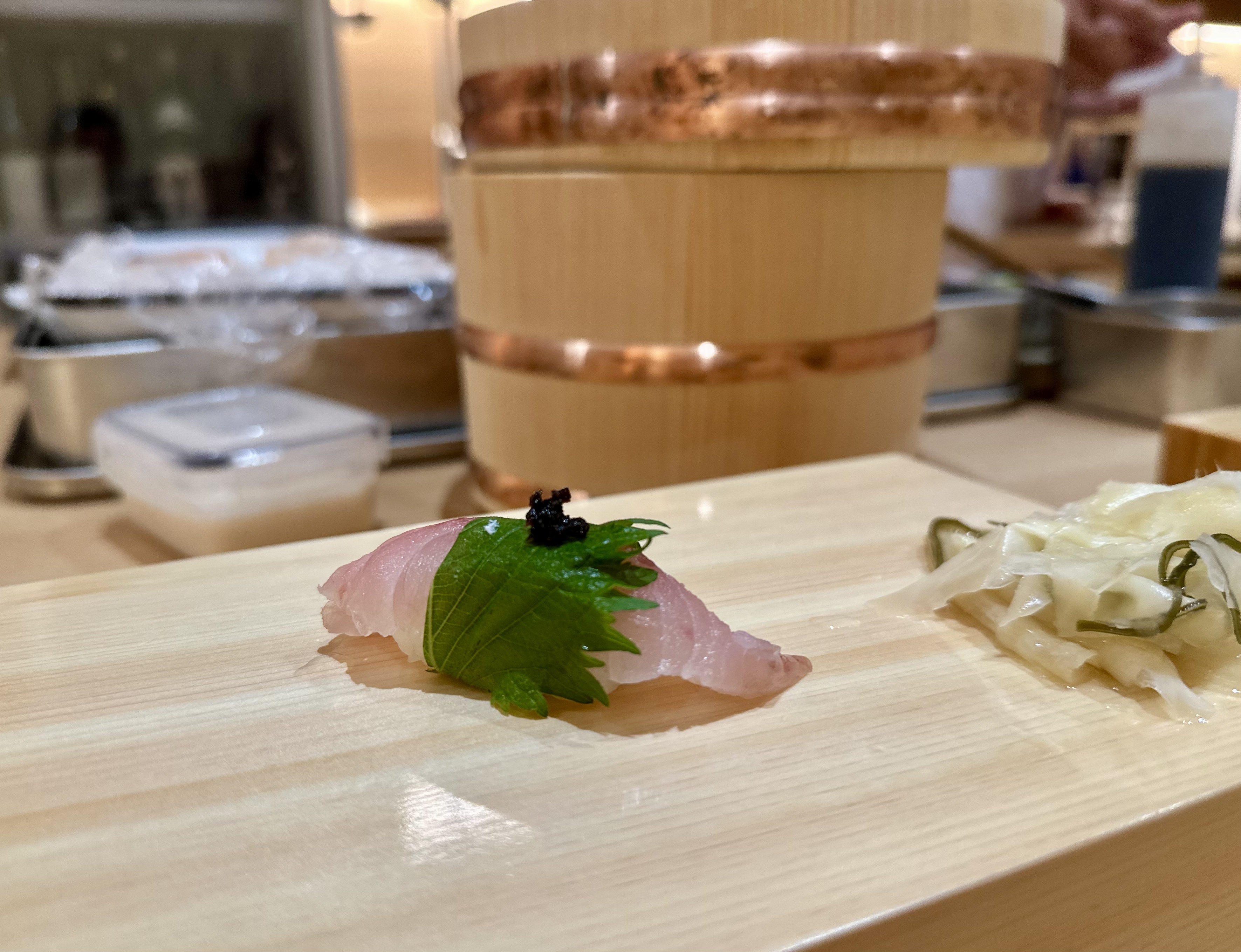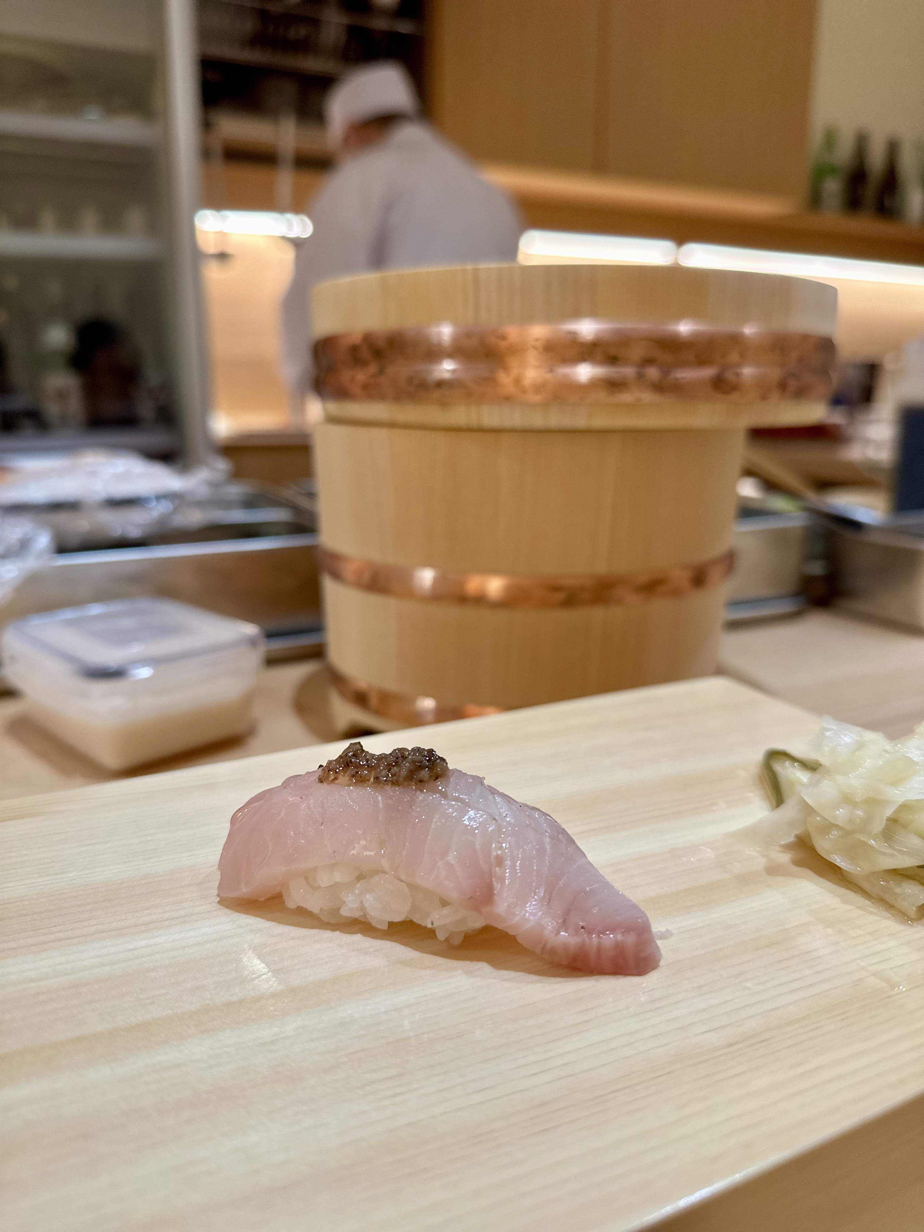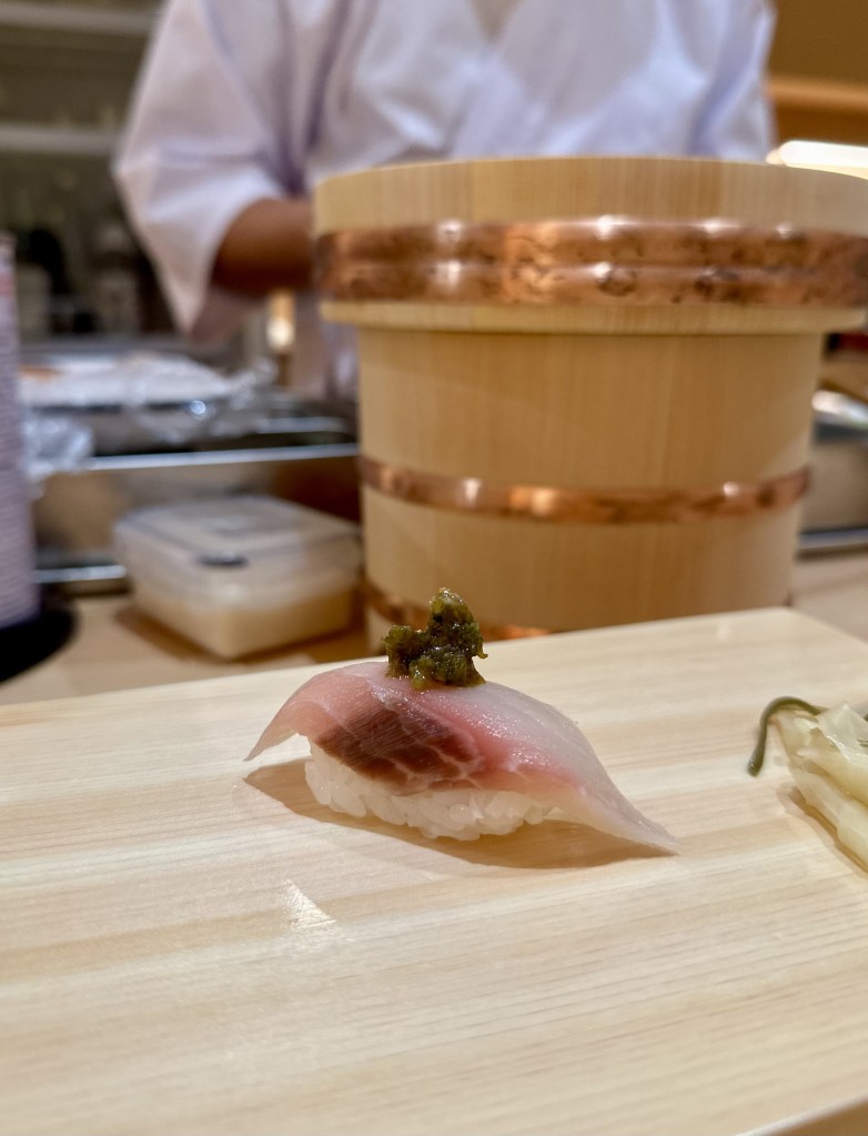 The colour of the shima aji was a little.. questionable. I liked the fragrance of the spring onion but I thought the overall balance of the sushi could be better