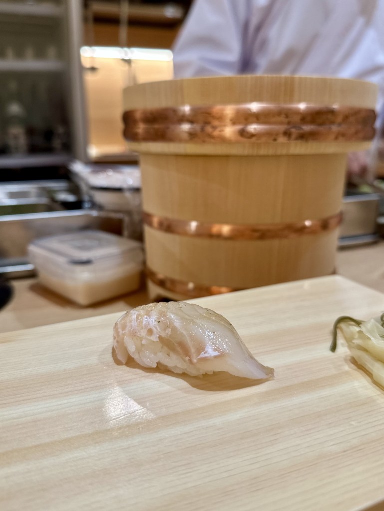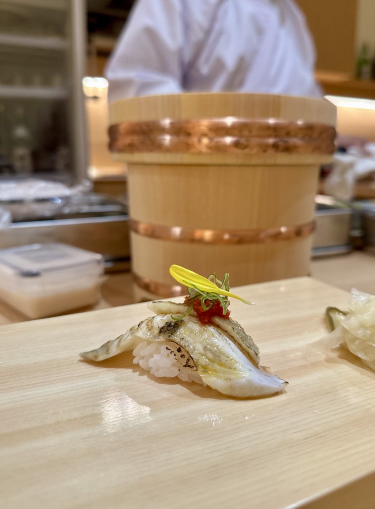First piece. Uninspiring, for the better lack of word. The rice was flat, like it lacked character. I thought I was eating normal Japanese rice. Fish was pretty average as well. I couldn’t get the name of the fish in Japanese and I didn’t bother to after eating as well