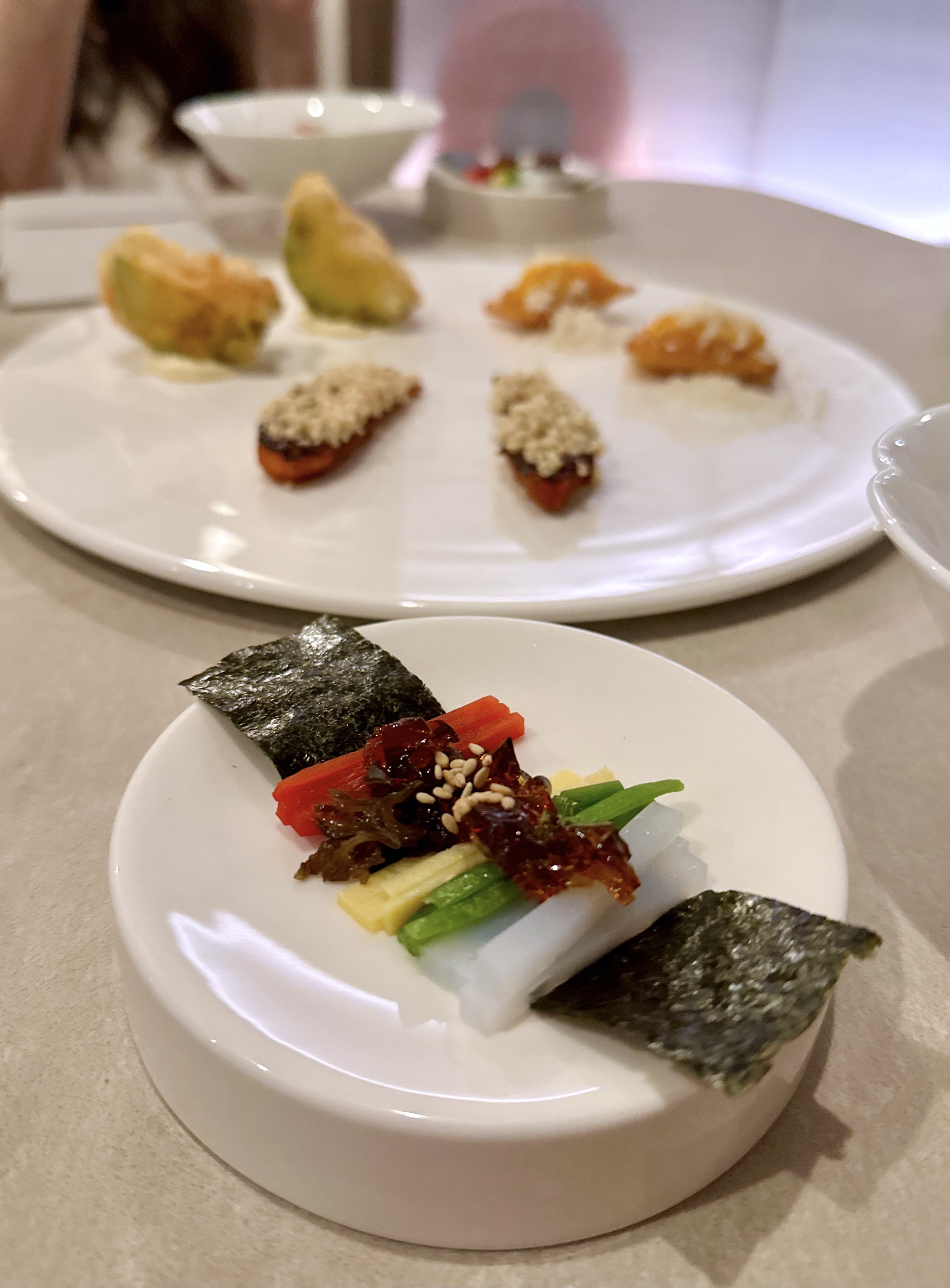 We were asked to roll it up and eat with one bite. It tasted like gimbap, atas version. We liked it. The sweetness and the crunch followed through and the fragrance of the seaweed ended it on a nice note