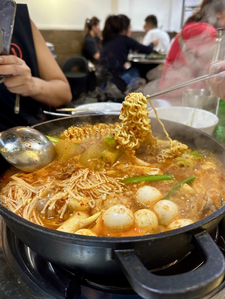 As we were dining, there was a family next to us who bumped into their neighbour that was leaving the restaurant. The neighbour happily asked them how’s the food, and there was a moment of awkward silence. We just laughed. I guessed perhaps the taste wasn’t to locals’ tastebuds cos in all honesty, there were a lot of Koreans there. So maybe the stew really tasted as it was and Koreans like it. I could only say, it’s good to give this a try. But once is enough