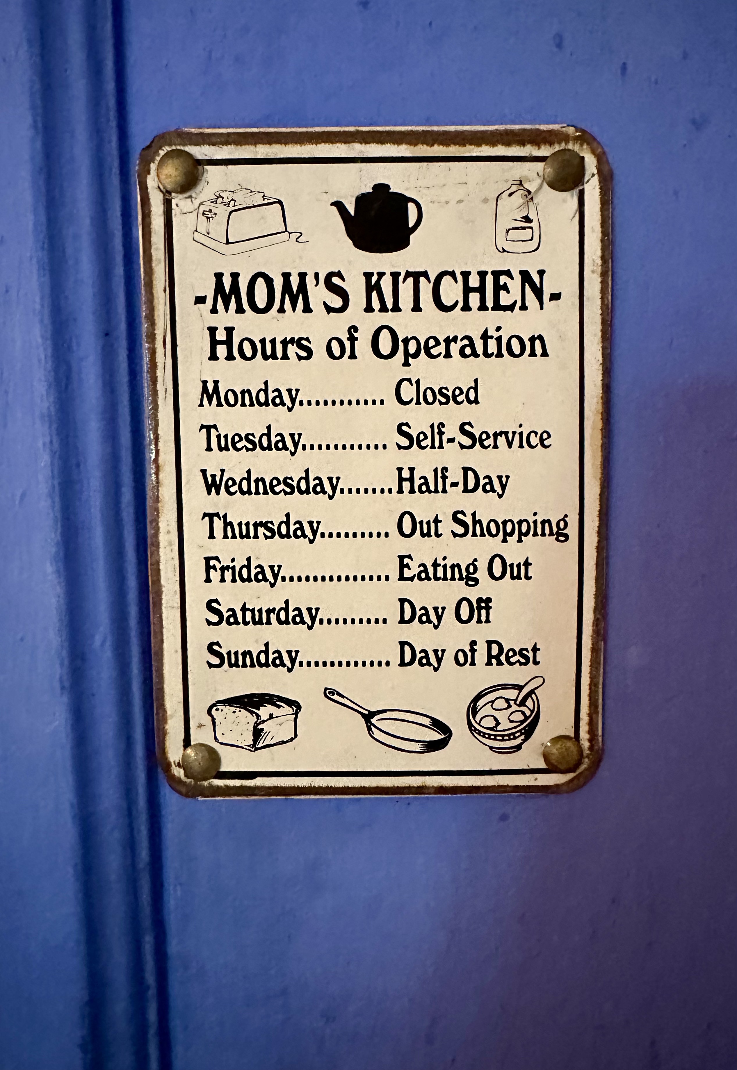 Breakfast was included in our stay but we were so early the kitchen wasnโt ready. So while we waited, we explored the reception a little and saw these really cute sighs!
