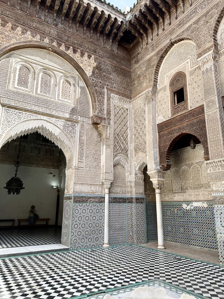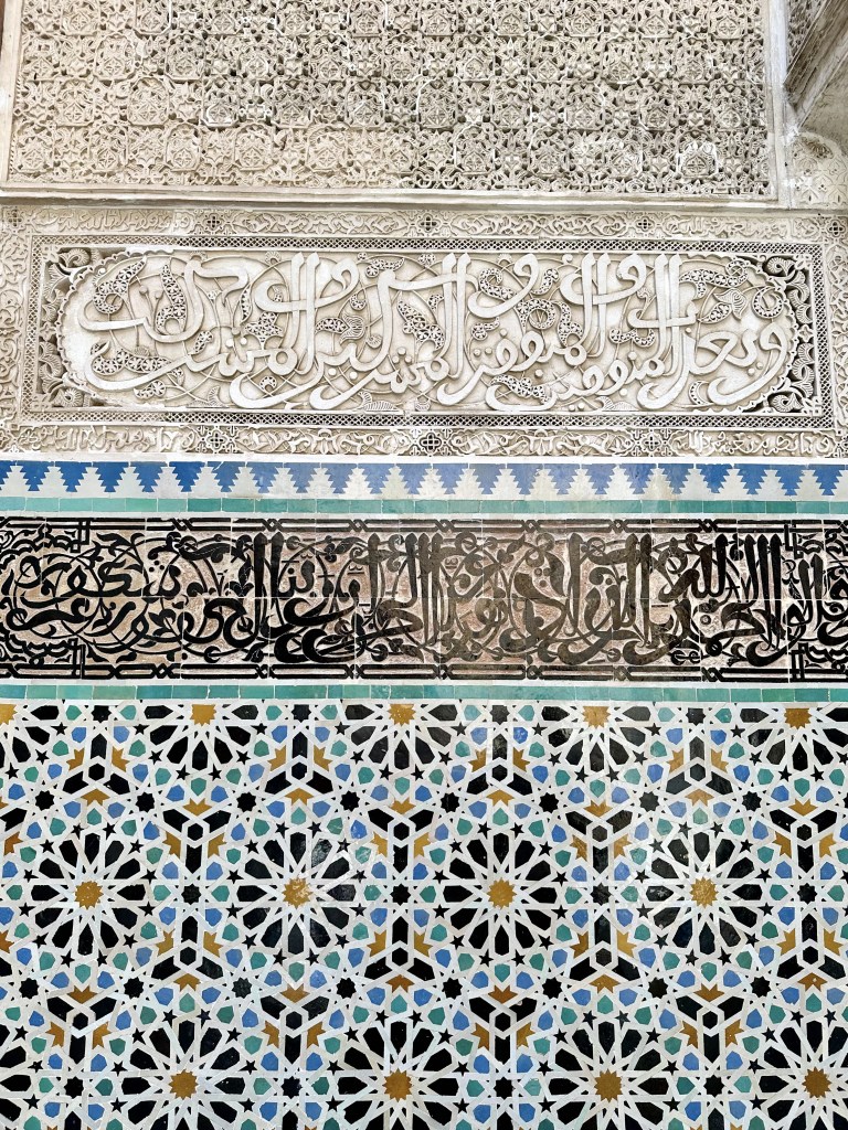 We had visited so many Madrasa we were abit confused. But whatโs special about this place is that their interior that were all made different. The pavement, pillars were covered in mosaic tilework, while the upper zone were mostly filled with carved wood in geometric star patterns