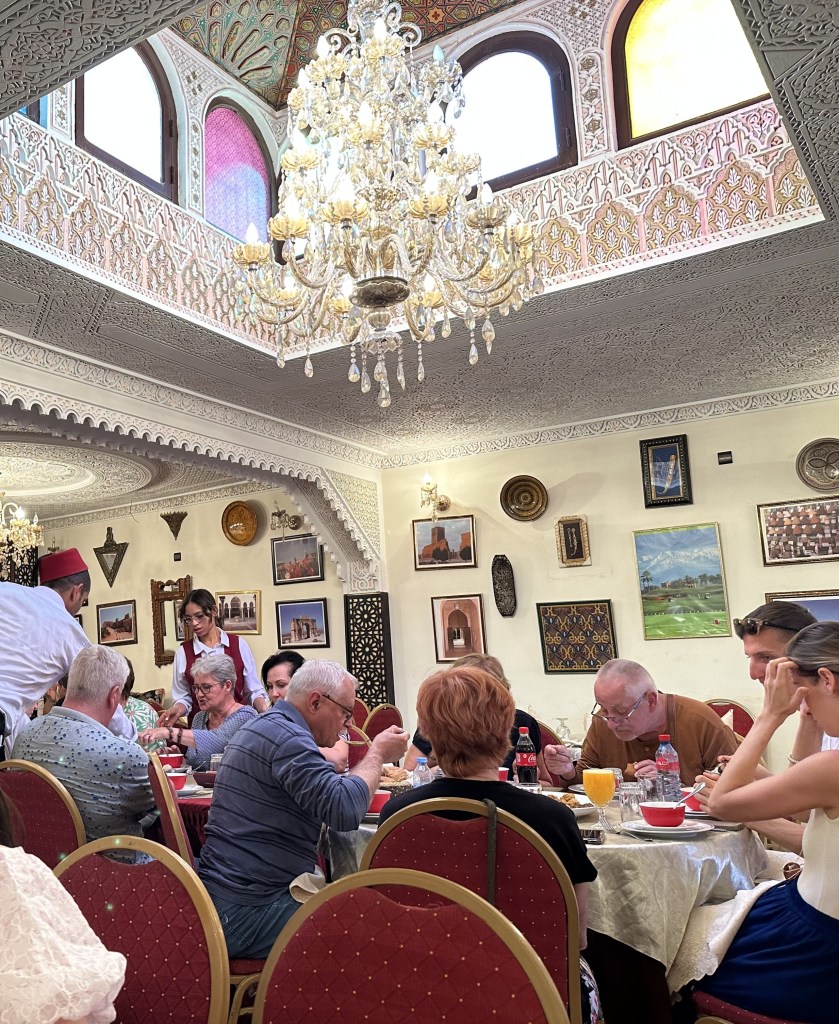 When we heard we were going for lunch, we were really happy. We were brought to try this place (we didnโt choose, the guide selected) that serves tangine, a traditional Moroccan dish braised with spices, garlic, lemon and onions