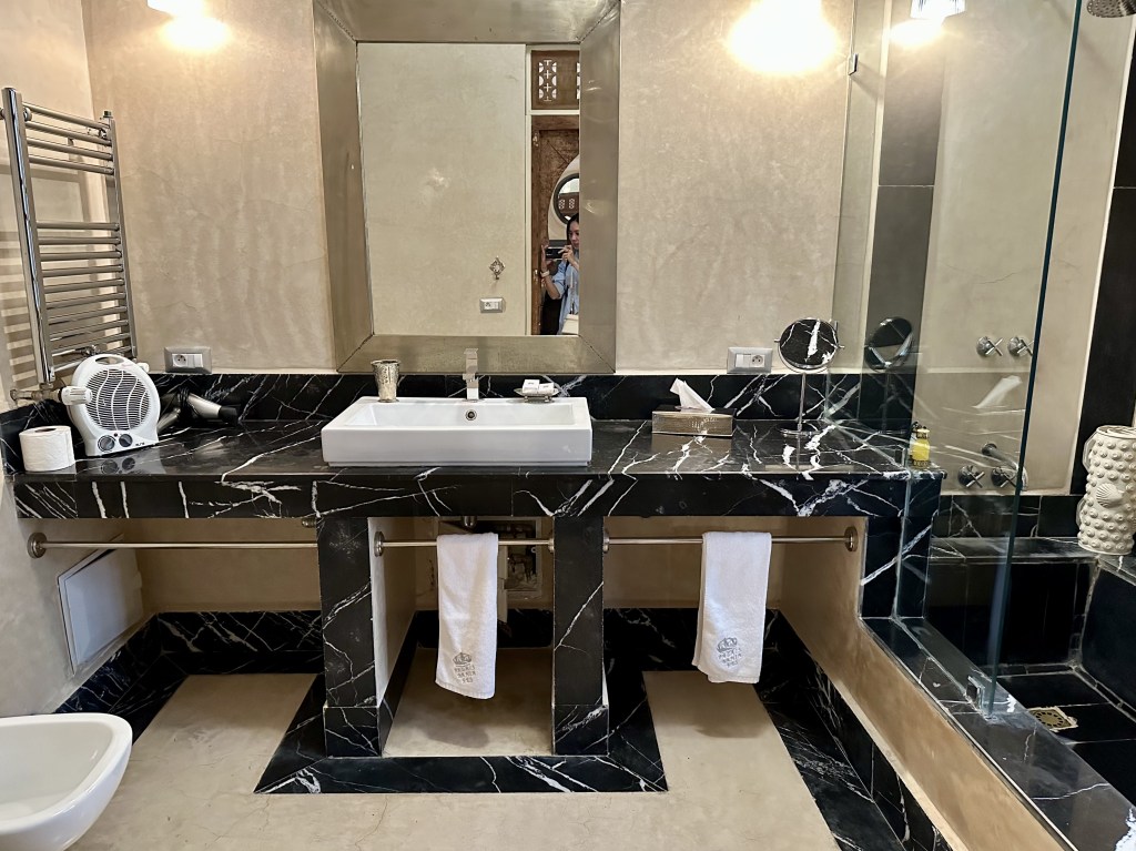 After our tour ended, we made our way to our accommodation for the next 2 nights – Palais Bahia in Fes which we had booked ourselves. The hotel was located at the old city so cars couldnโt enter. Thereโs a central carpark for drop off / pick up and the luggage boys would wheel their trolley to the parking lot