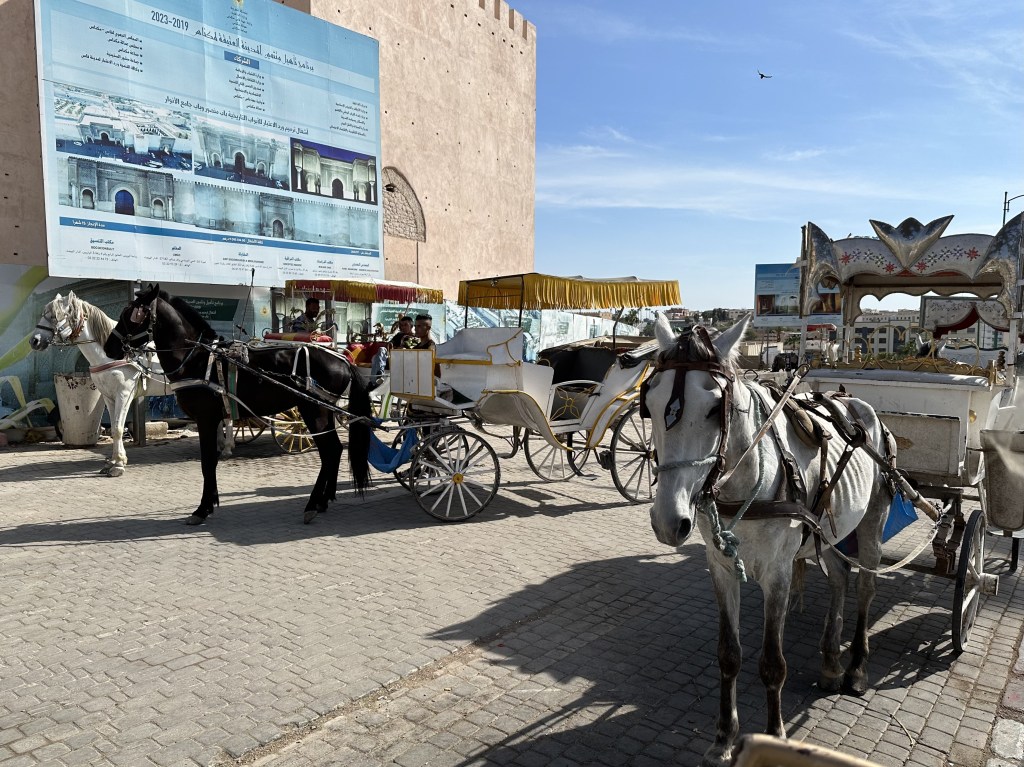 Anyway with lunch over, we went on to have a tour of Meknes, the imperial city of Morocco on a caleche ride. I liked that we didnโt have to walk, and we could take in the sights on it. But the horse wasnโt the best-smelling, so the whole ride was.. challenging