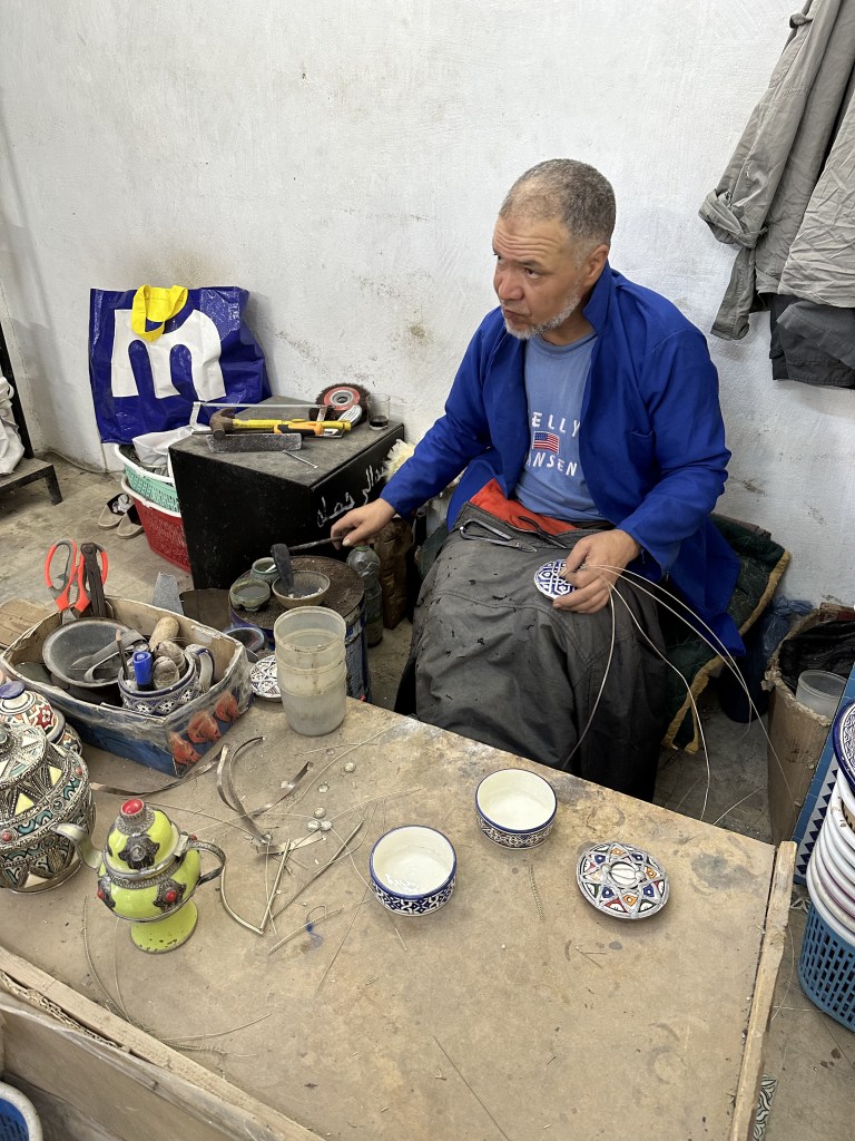 We moved on to get a birdโs eye view of Fes where the guide also told us a short history, before heading to see pottery making