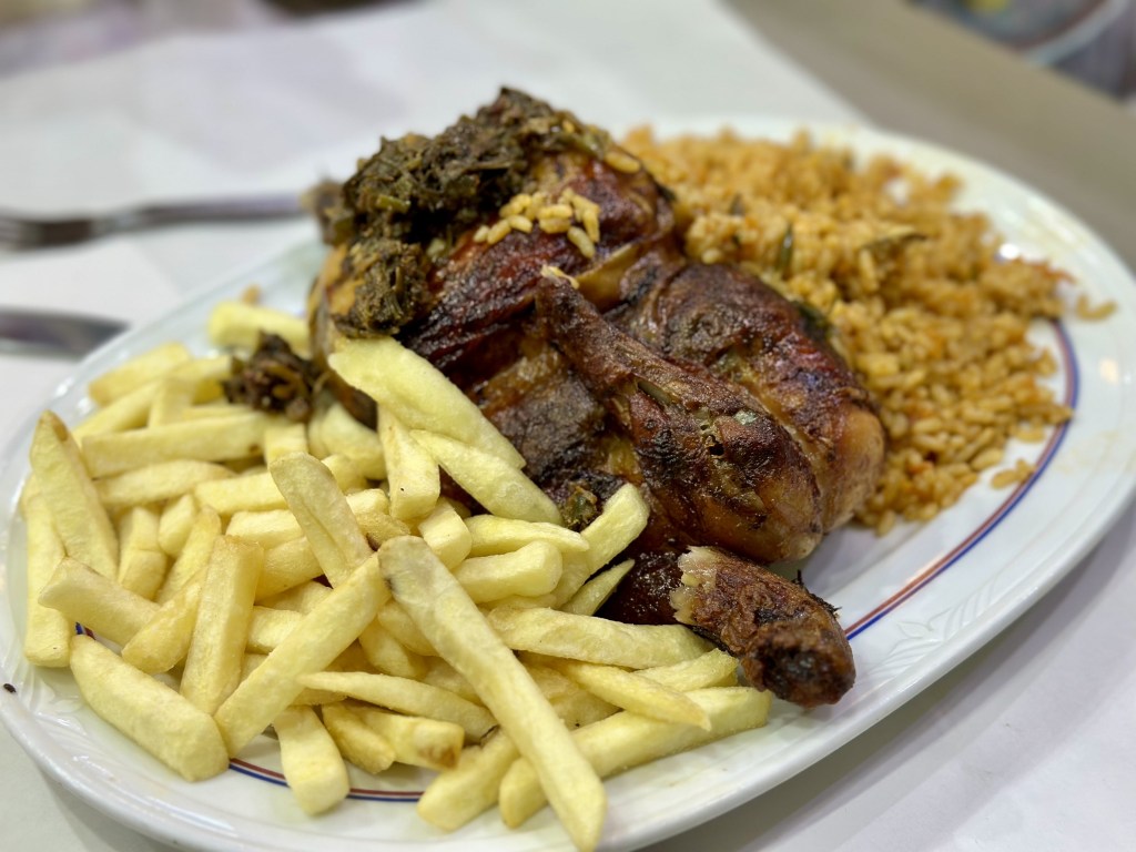 We went with 1/2 poulet cos we clearly were hungry. Then we realised oh, itโs not really fried chicken. Itโs more grilled. But it was a little dry. It tasted better with tomato sauce