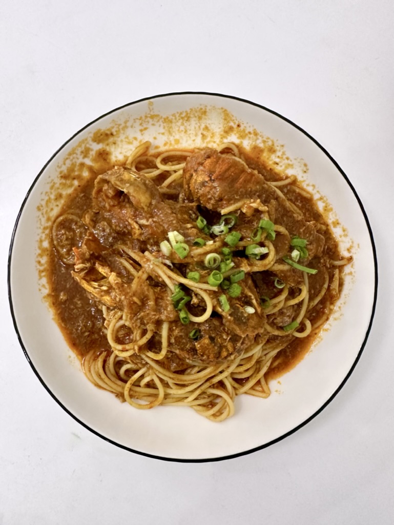 Spaghetti, Crayfish, In-house Chilli Sauce, Eggs, Spring onions