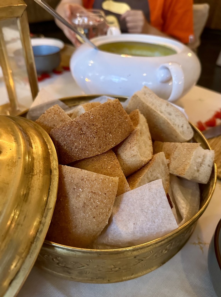 And soon, dinner commenced shortly cos there was nothing much everyone can do. We started with some Moroccan tea and snacks as welcome hospitality before they started serving us proper
