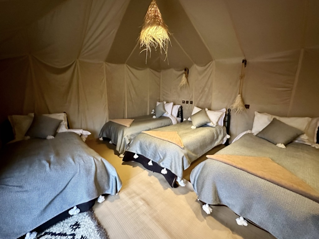 We managed to disembark from our camel and made our way towards our tents quickly and here’s our accommodation for the night at Luxurious Merzouga desert camp (which we had found ourselves)