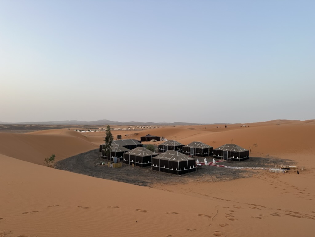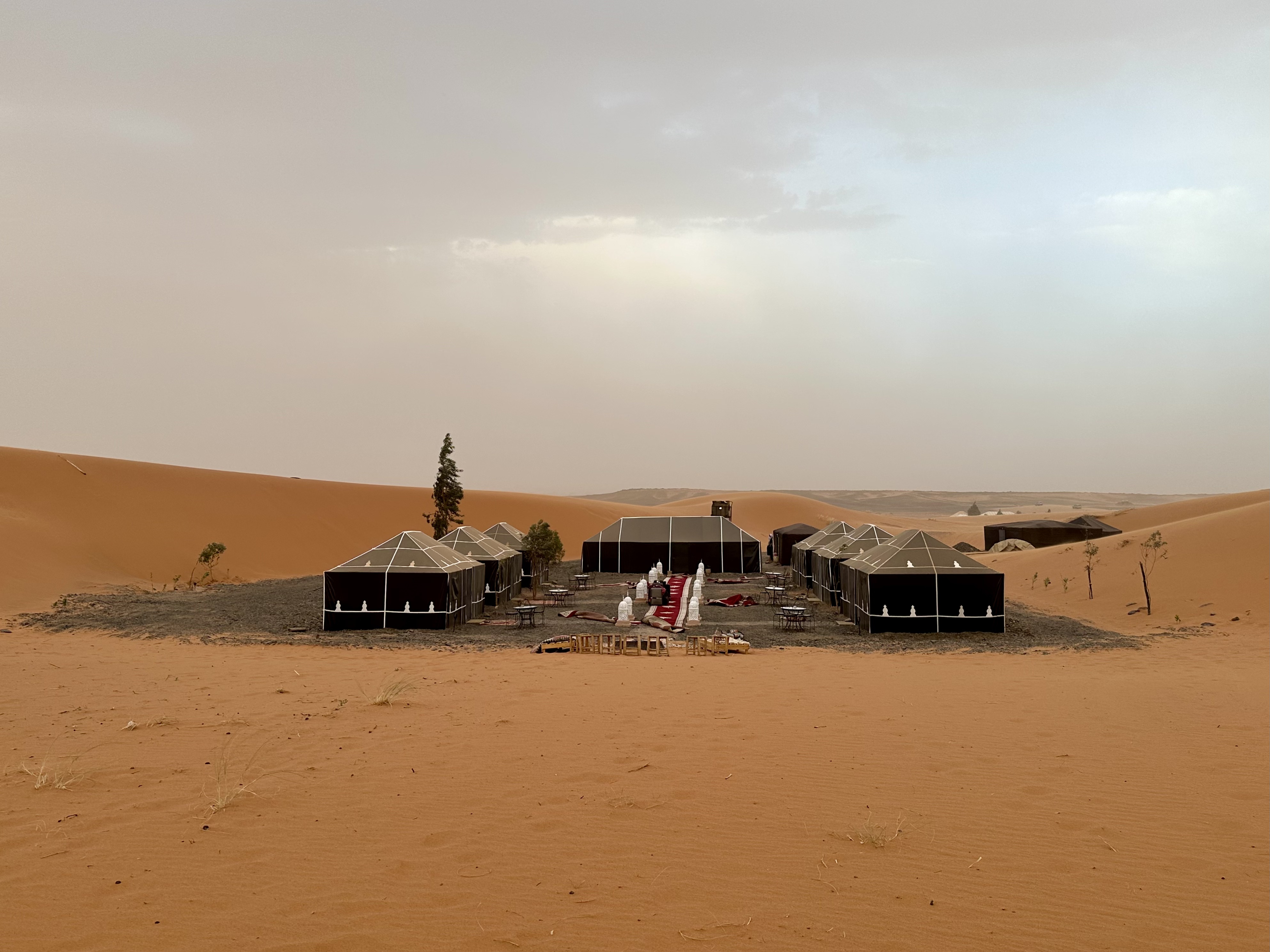We managed to disembark from our camel and made our way towards our tents quickly and here’s our accommodation for the night at Luxurious Merzouga desert camp (which we had found ourselves)