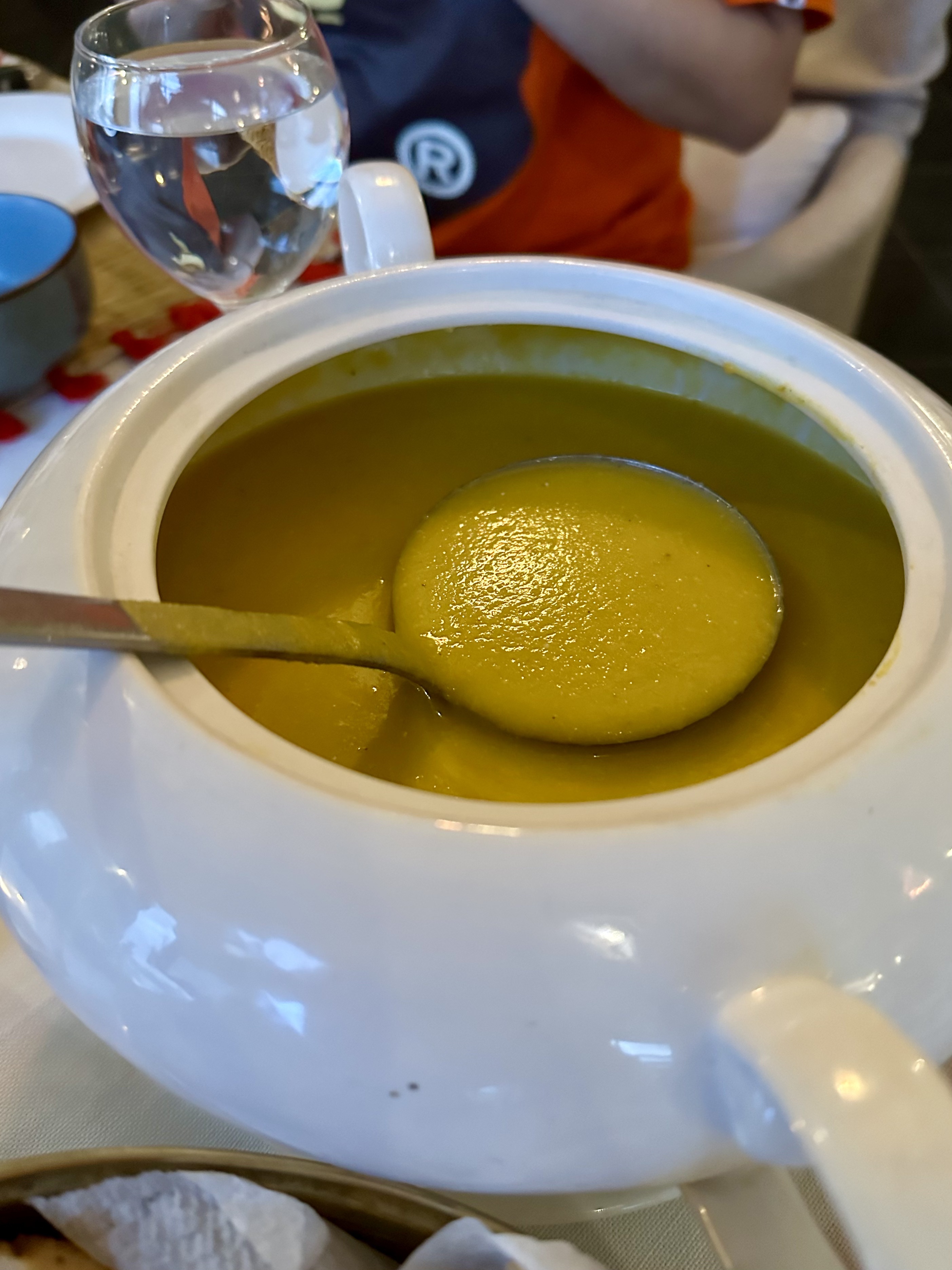 Then came a huge pot of soup. I really liked the soup. It tasted somewhat like quash so it was creamy and tasty