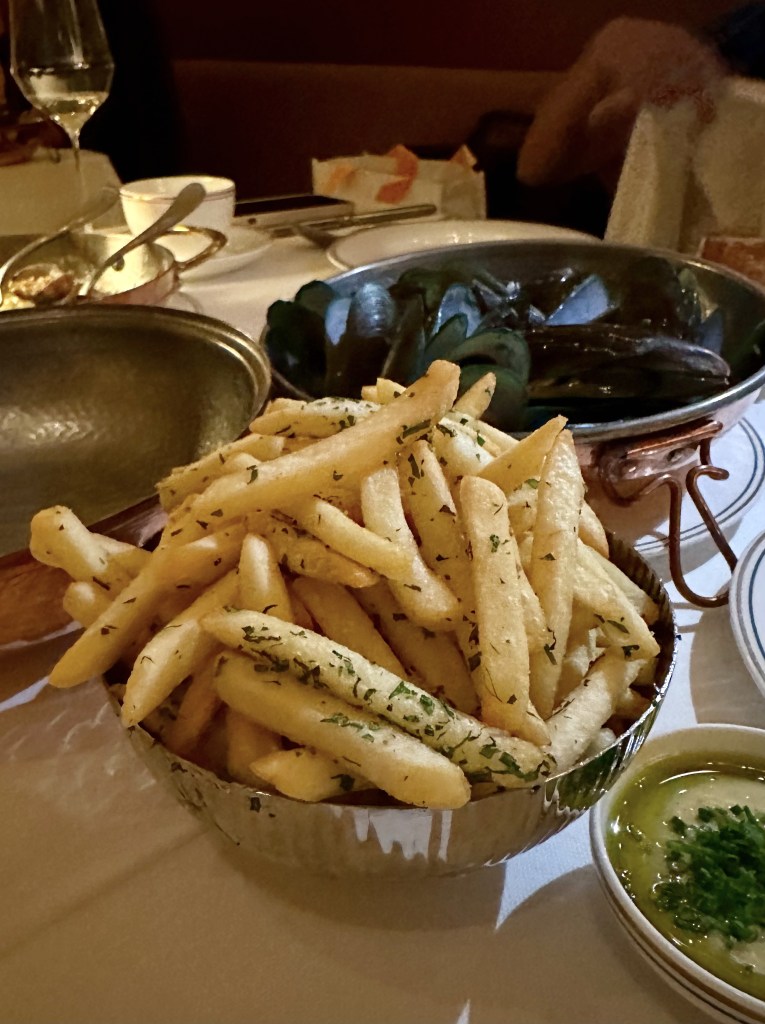 Mussel Beurre Blanc, Jalapeño Aioli, Spring Onion oil & Pommes Frites