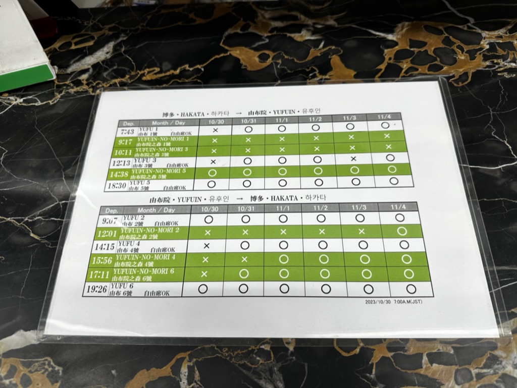 Previously when I was looking at my Yufuin-bound train timings, I was surprised the morning timings were all sold out so I had to settle for the Mori 5 leaving 1438. Then I realised, the trains were not available to start with. Regardless if you had booked the Mori 3 leaving 10.11am, you would be running a marathon from the airport to the tracks since it would be very challenging not to miss the train. On hindsight, I was glad I booked the Mori 5 instead