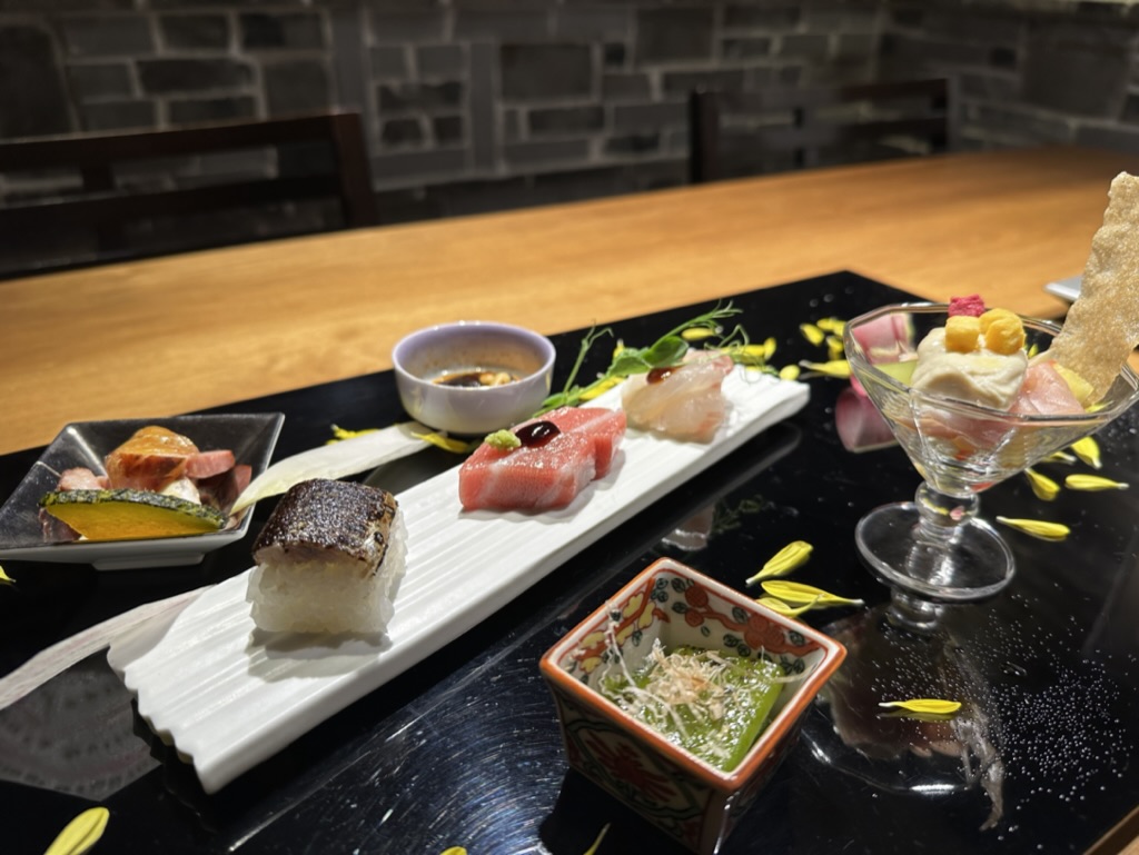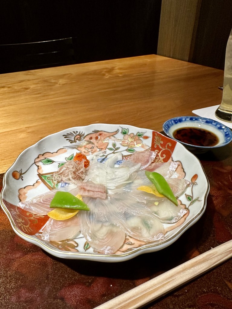 Sashimi Course – Sama Suhi, Chutoro, Sea Bream, Roast Duck, Monkfish Liver
