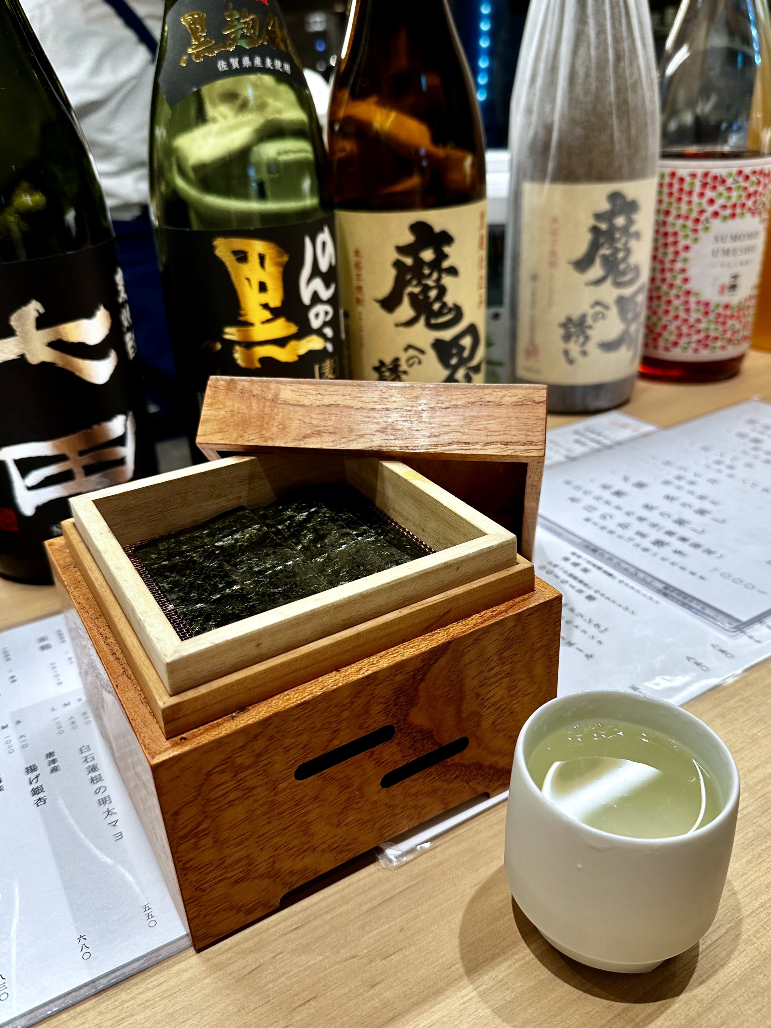 The grilled seaweed was a popular item here so I got myself some and a sake to start. They go by different sizes and mine was the medium
