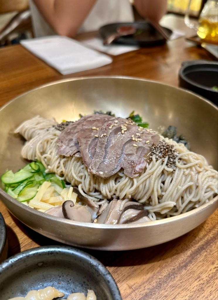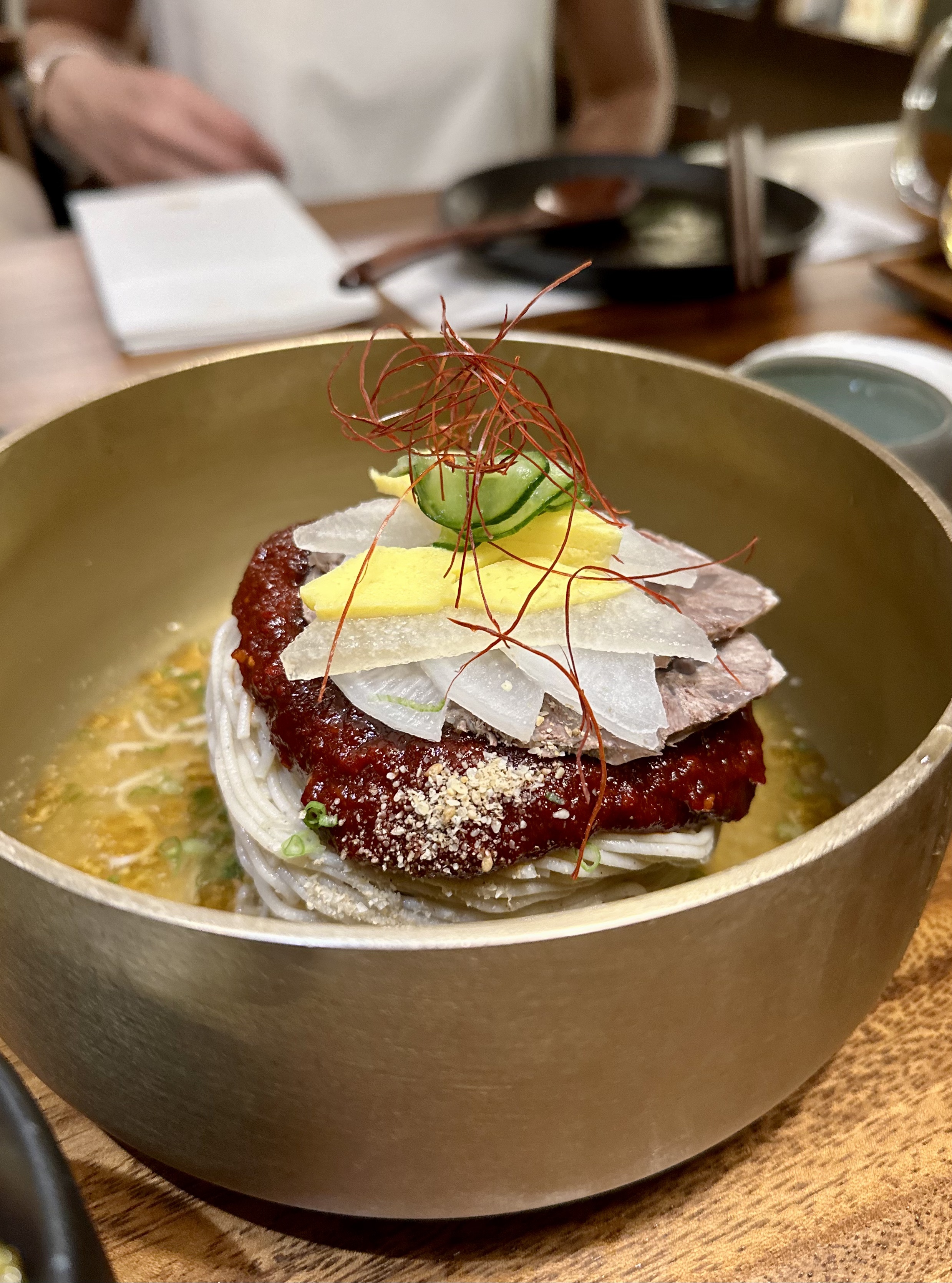 House-made Buckwheat Noodles, Beef Heel Muscle, Shredded Egg Crepe, Pickled Radish, Pickled Cucumber, Fresh Cabbage Kimchi