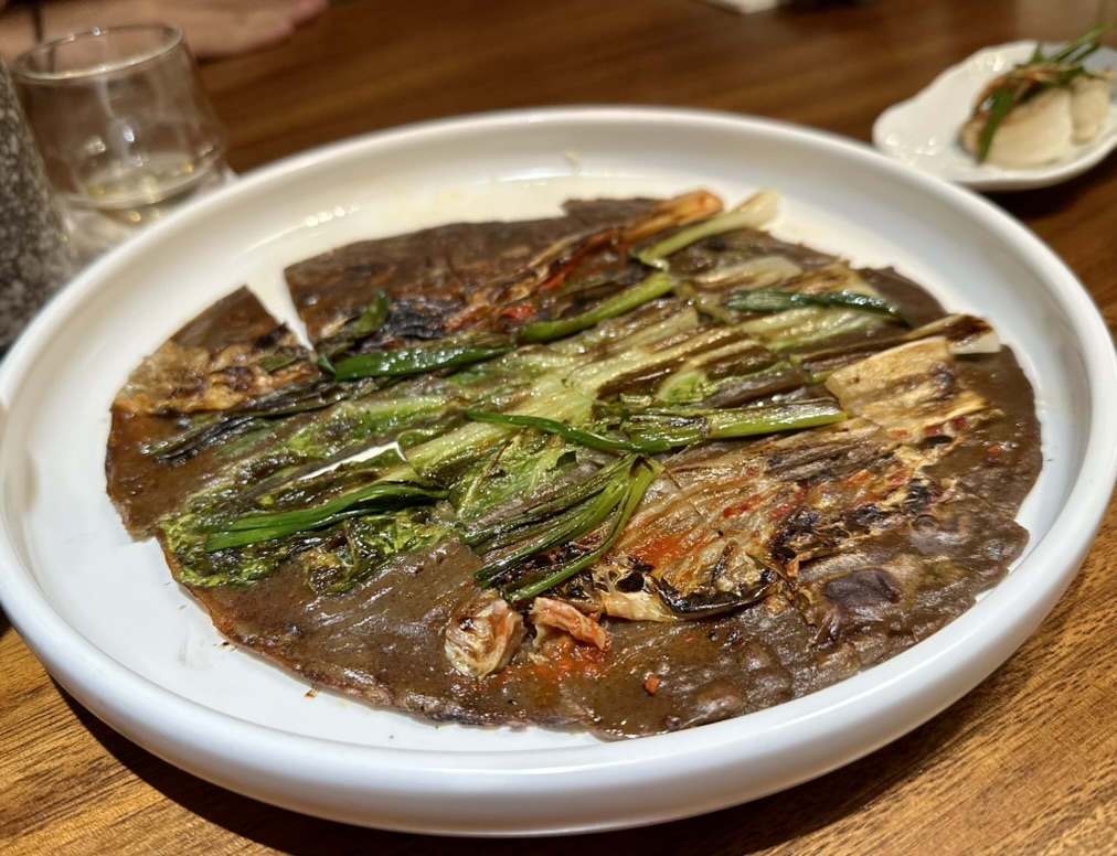 The pancake was the first to arrive at the table. First impressions? Wasn’t impressed. It looked a little sad. After one slice, the colleague went – this is the nicest pancake I’ve eaten. And went on after we got back office. lol. It’s not the usual Korean pancake you will expect. But the thin crepe was a surprise. You could taste the fragrance of the buckwheat with each bite and alongside their special sauce, it was actually not bad