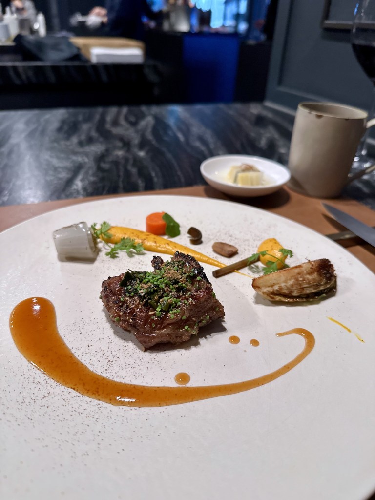 Cooked using charcoal, served with dill, potato puree & citrus sauce. We were asked to choose our dining knife before this dish came out. The neighbour asked if the knife made any difference to this dish. I shook my head and said nope. lol. Honestly, I thought the dish was normal and also, too much truffles for me