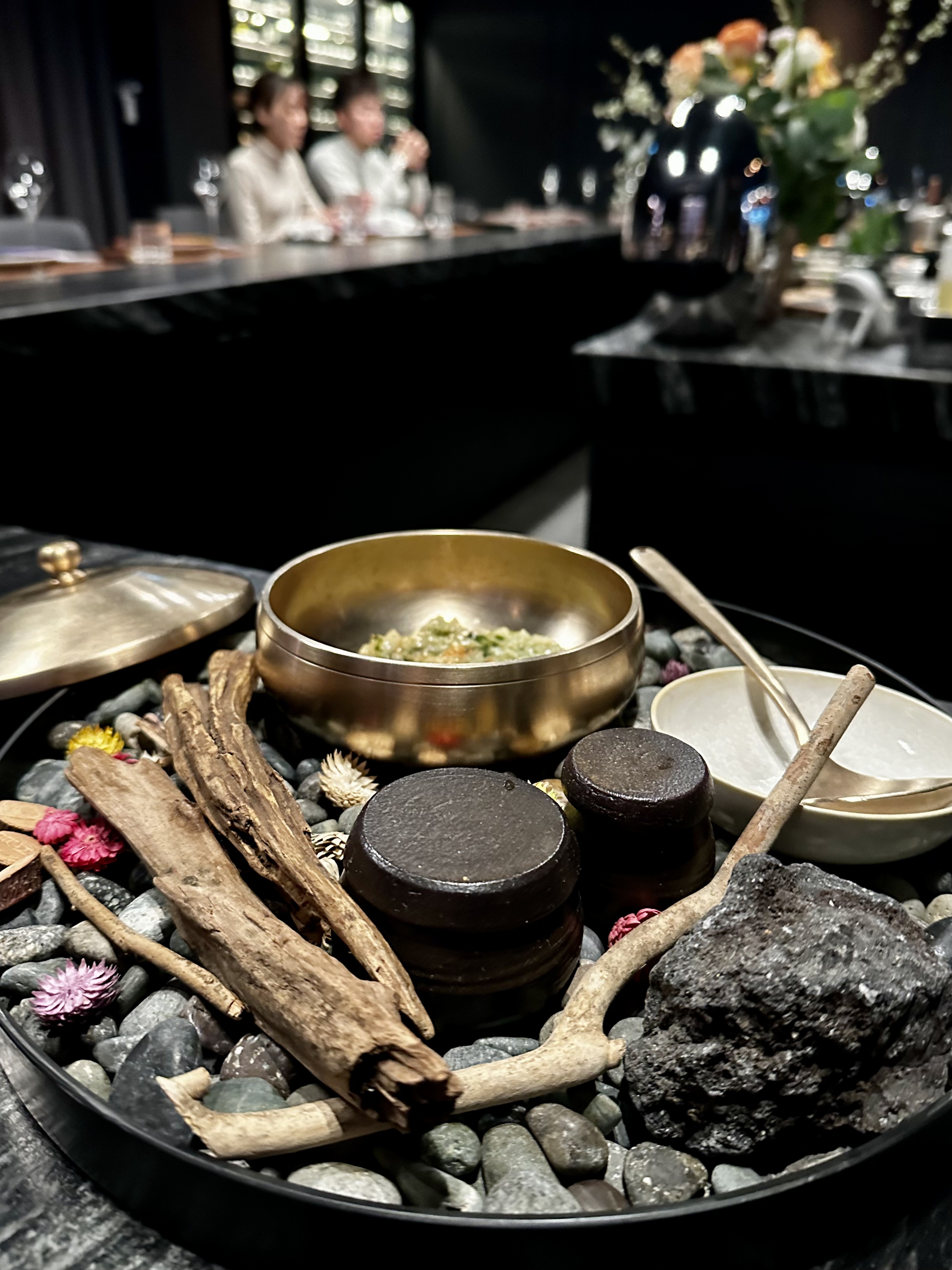 Since I was in Seoul for my birthday trip, decided to visit a restaurant for a good meal. 7th Door, ranked 18th on Asia’s 50 best restaurants and has many accolades under its belt focuses on fermentation and ageing on traditional Korean cuisines with a modern touch. One will be led down the hallway, the length of the six doors symbolically and finally reaching the dining area at the end. I was there on the earlier seating and soon realised most of the diners are tourists, with many Singaporeans as well. lol. The staffs told us – oh! We have many Singaporeans lately. Yes, we could tell from our Singaporean accent. Ha