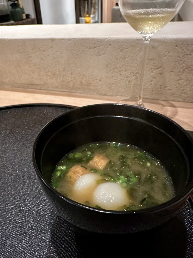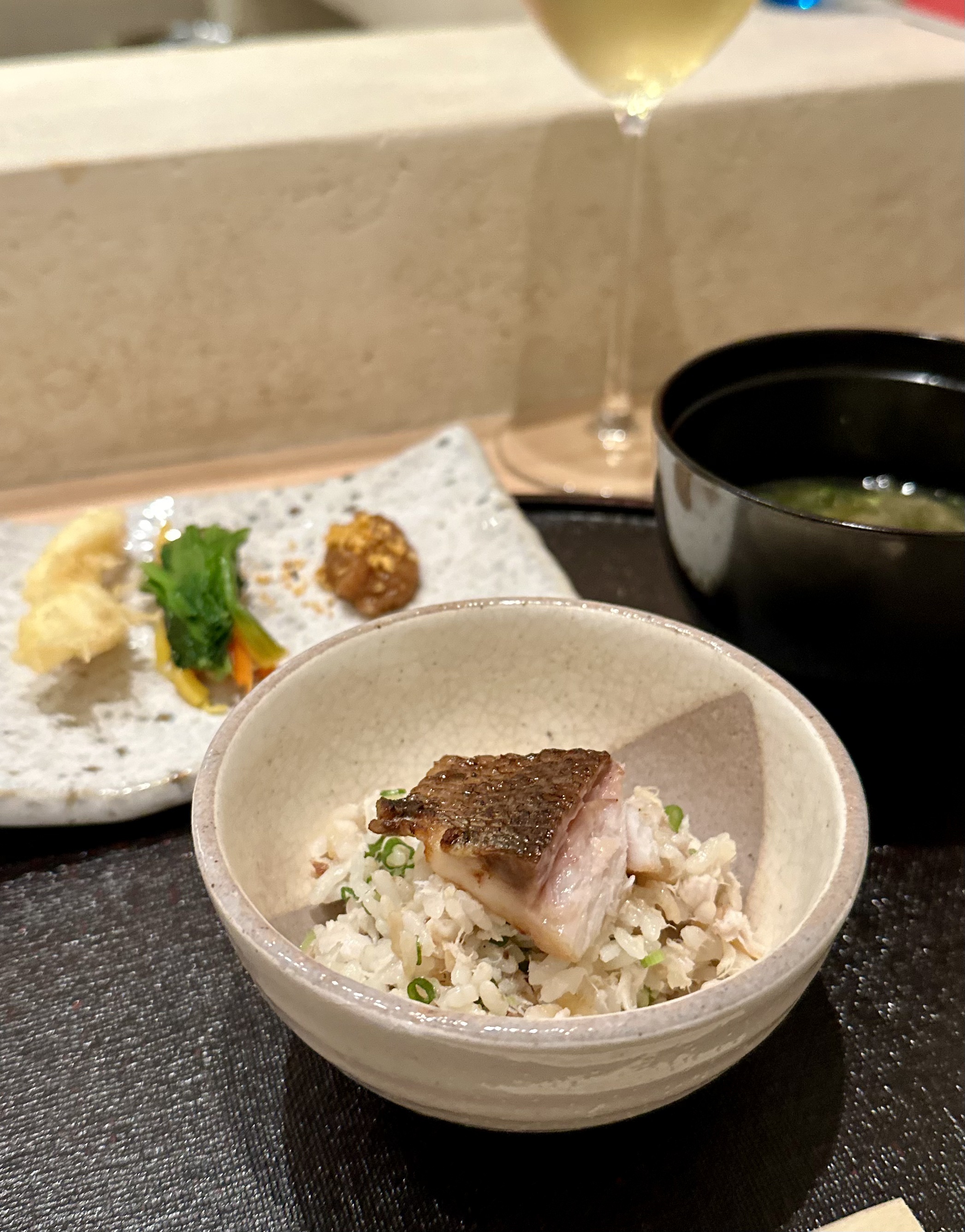We were told to stir well, like a wine. Simmered for 4 hours, the consommé was light, yet you could taste the beautiful flavour of the tuna with the slight fragrance of the spring onion. And yes, it did go well with the next 2 dishes