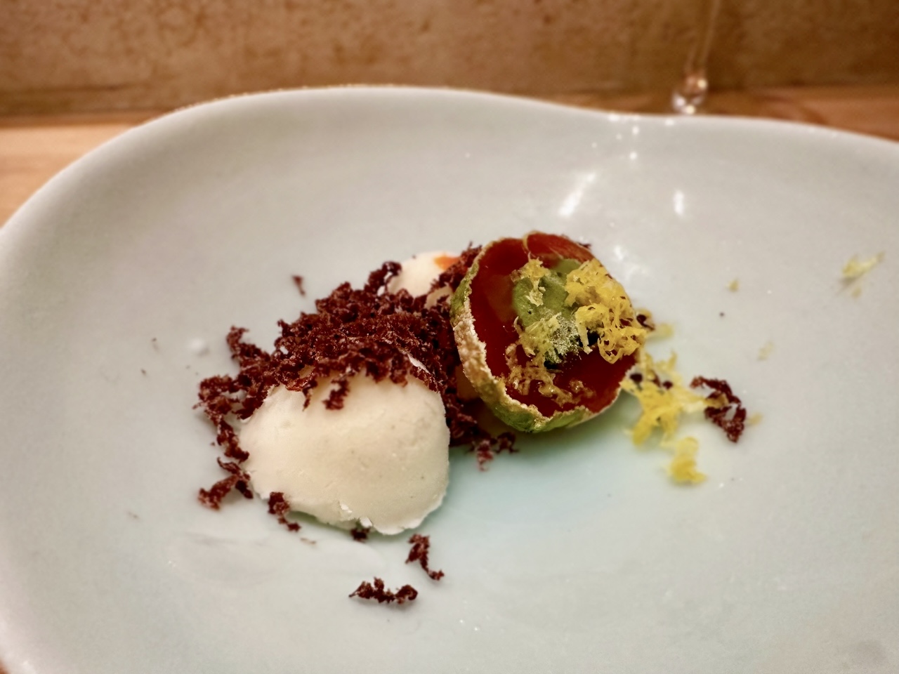 Shiitake Chocolate, Persimmon, Chilli Oil, Matcha