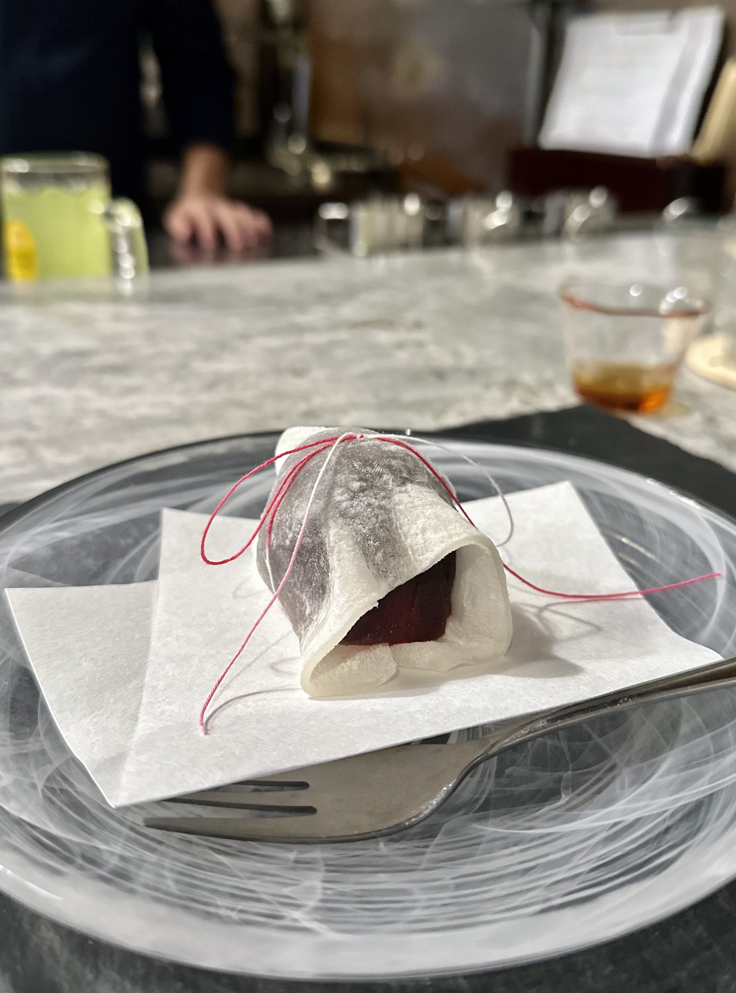 They made you slice the daifuku with a string. Why? I guess.. for the fun element. Thoughts on the daifuku – well, I had better ones in Singapore