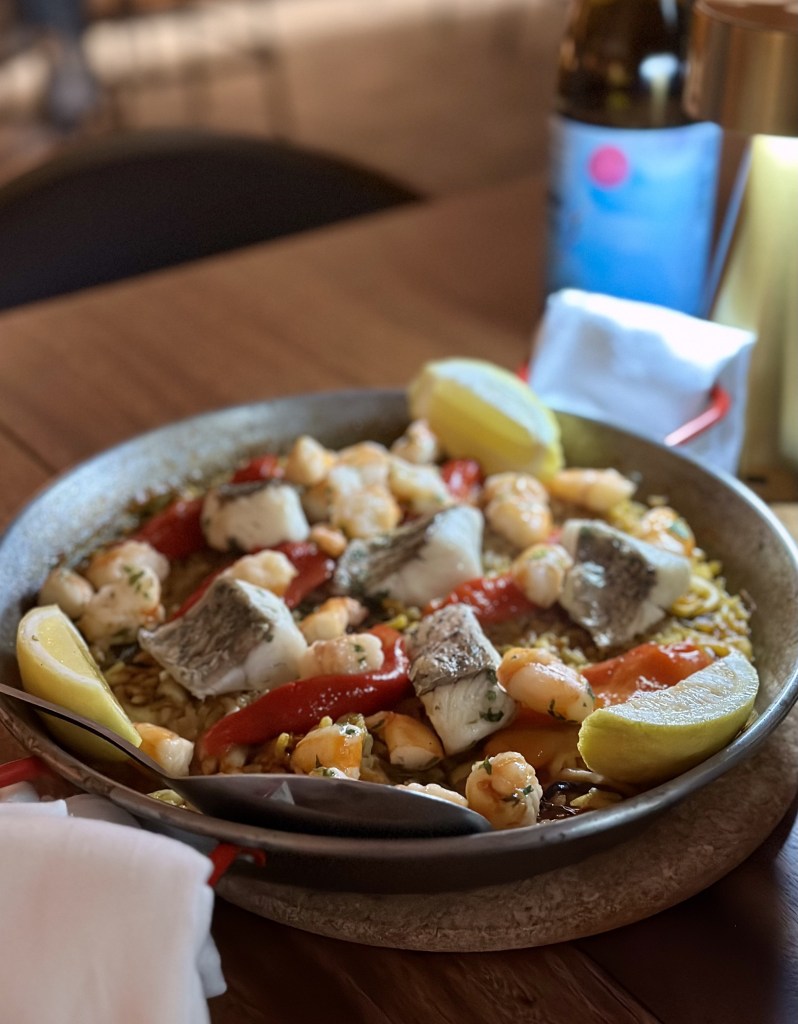Gentleman’s paella, bomba rice cooked with saffron, calamari, barramundi and smoked prawns