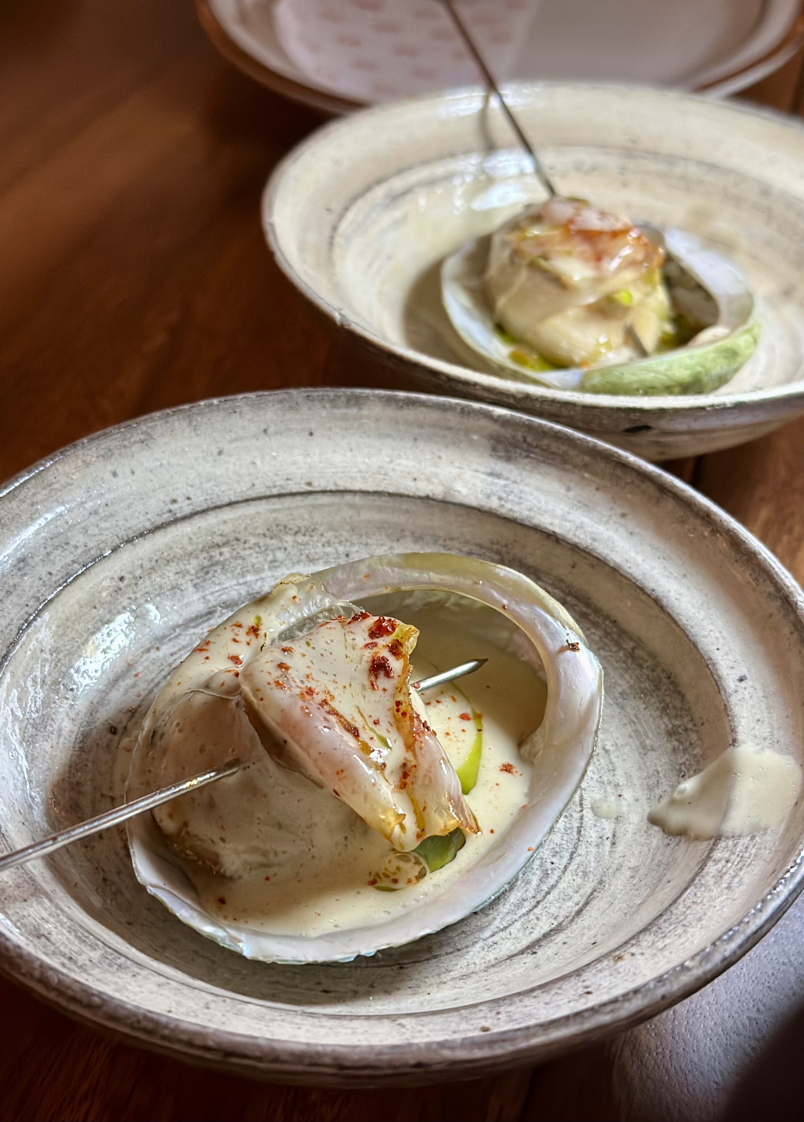Slow-cooked abalone finished over charcoal with Iberico pork lardo and butter emulsion