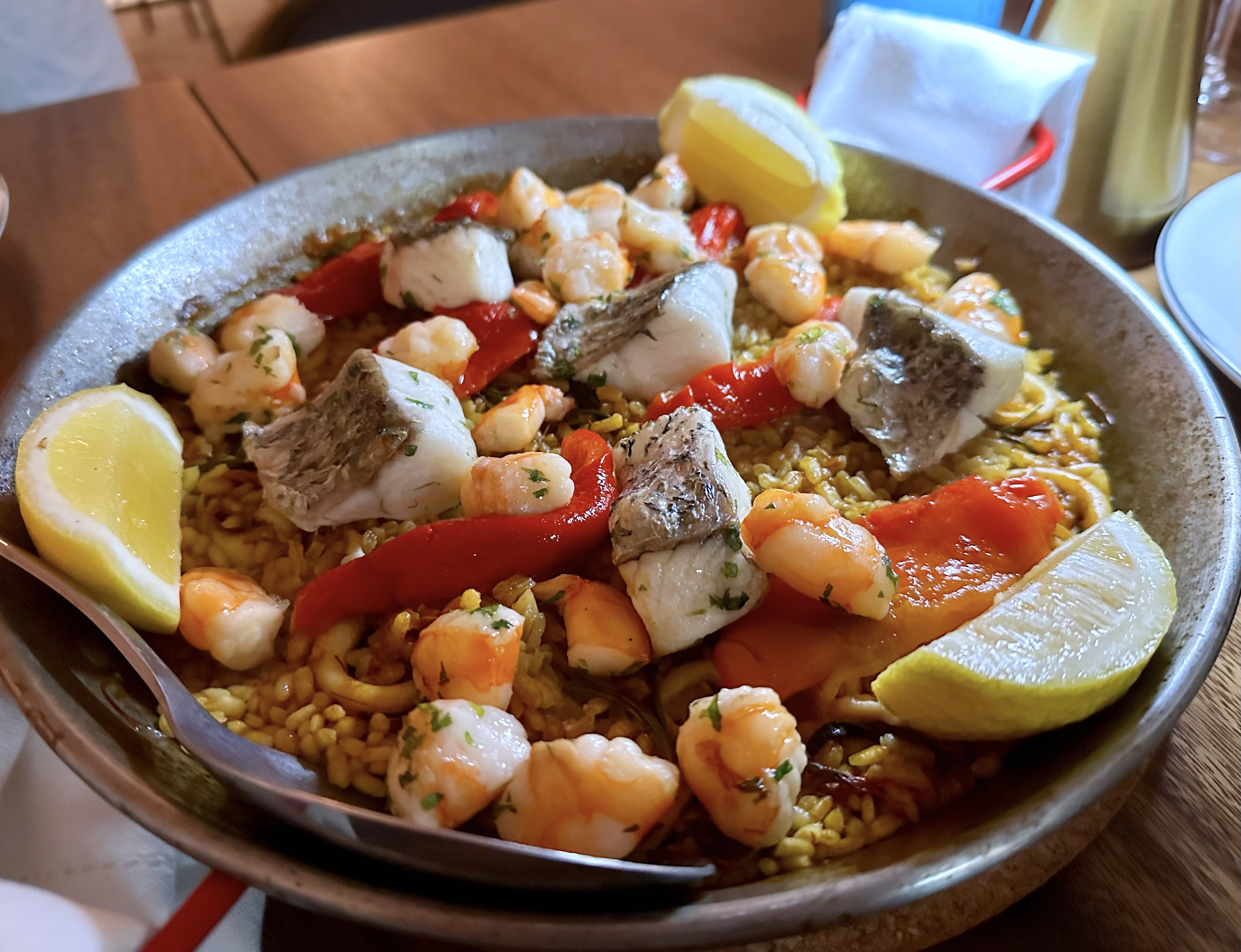 Gentleman’s paella, bomba rice cooked with saffron, calamari, barramundi and smoked prawns