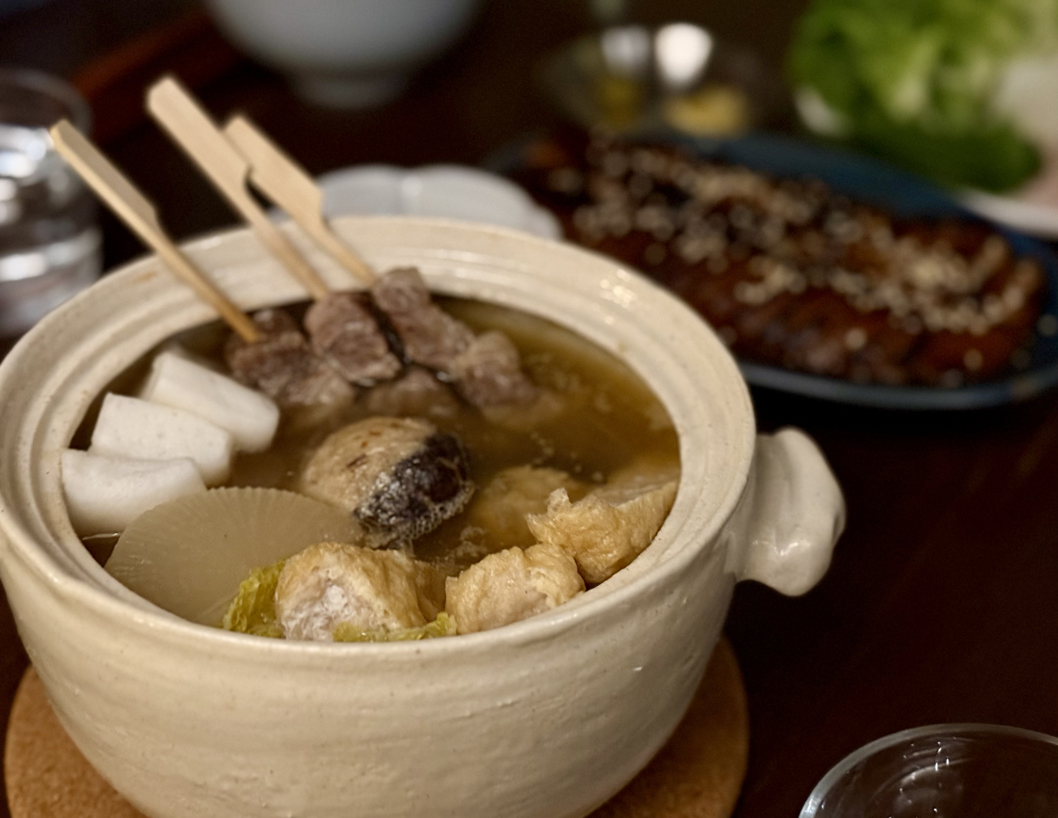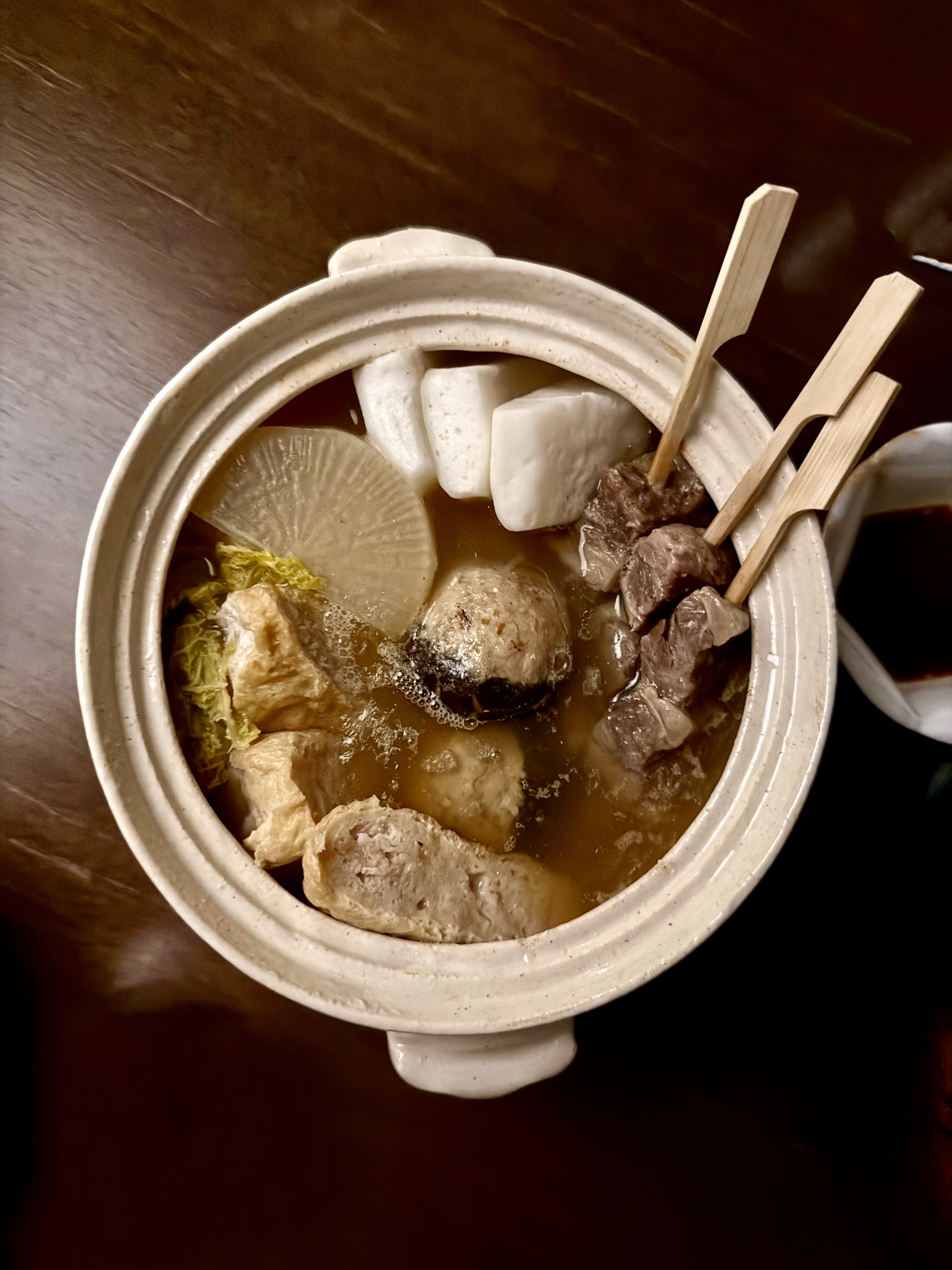 Shitake Meatball, Prawn Paste Aburaage, Beef Intercostal, Hanpen, Daikon, Udon