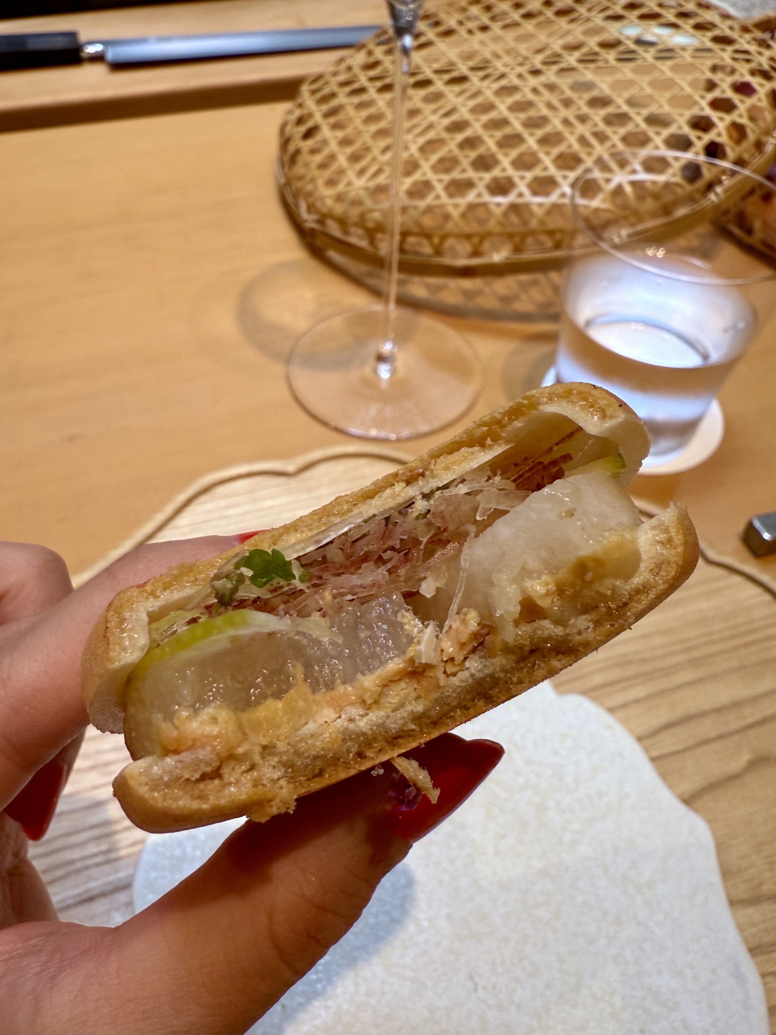 Starting with Esora’s signature monaka with seasonal autumn menu, the lemon and pear substitution was a delight. It was refreshing, citrusy yet balanced and it somehow went really well together