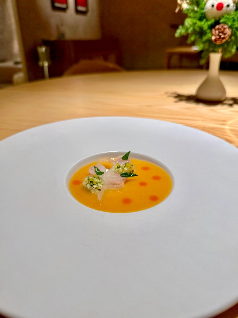 It’s a very elegant place and the table deco puts a smile on your face. They only have alcohol pairing and non-alcohol pairing available. Meaning you cannot order by the bottle nor by the glass. This probably wasn’t something I preferred but I guess, they really want the drinks to go well with the food. So yes, you can choose not to order any drinks if you like as well but as I glanced across the tables, I see most tables have drinks on their table. lol