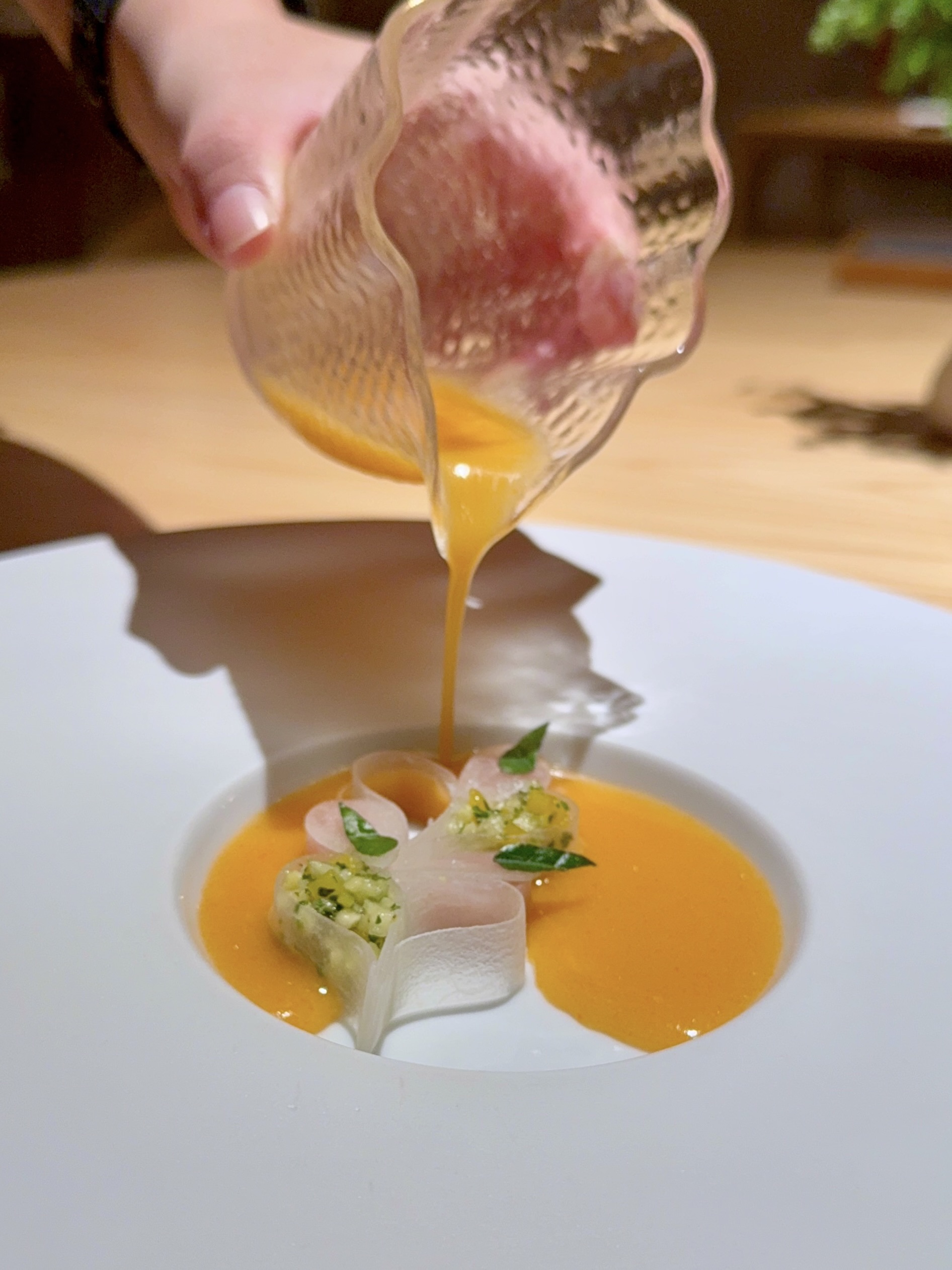 It’s a very elegant place and the table deco puts a smile on your face. They only have alcohol pairing and non-alcohol pairing available. Meaning you cannot order by the bottle nor by the glass. This probably wasn’t something I preferred but I guess, they really want the drinks to go well with the food. So yes, you can choose not to order any drinks if you like as well but as I glanced across the tables, I see most tables have drinks on their table. lol