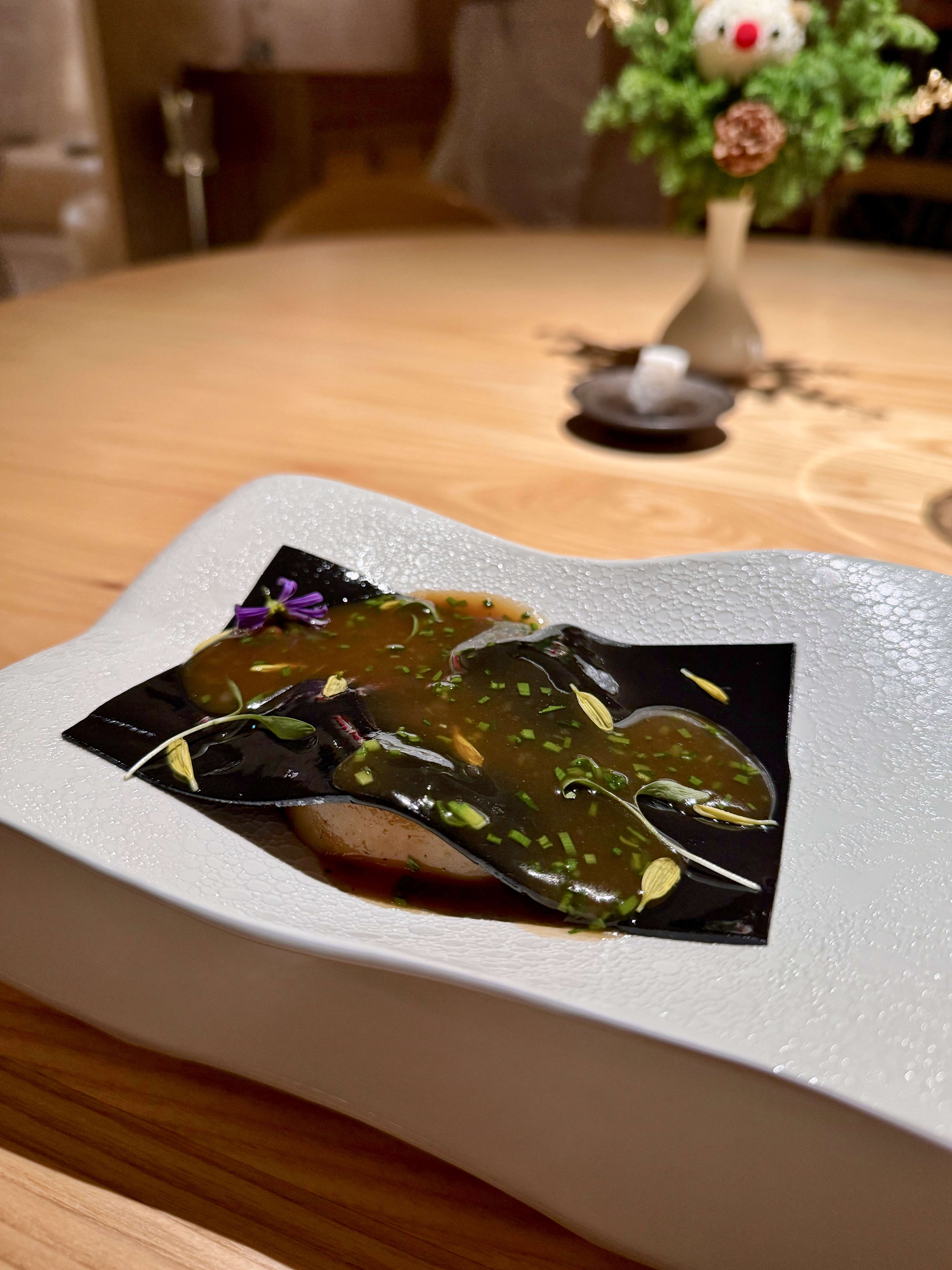 The 9 course menu is priced at NTD5,880 but in actual, you get more than 9 course. So much food I wanted to roll out of the place