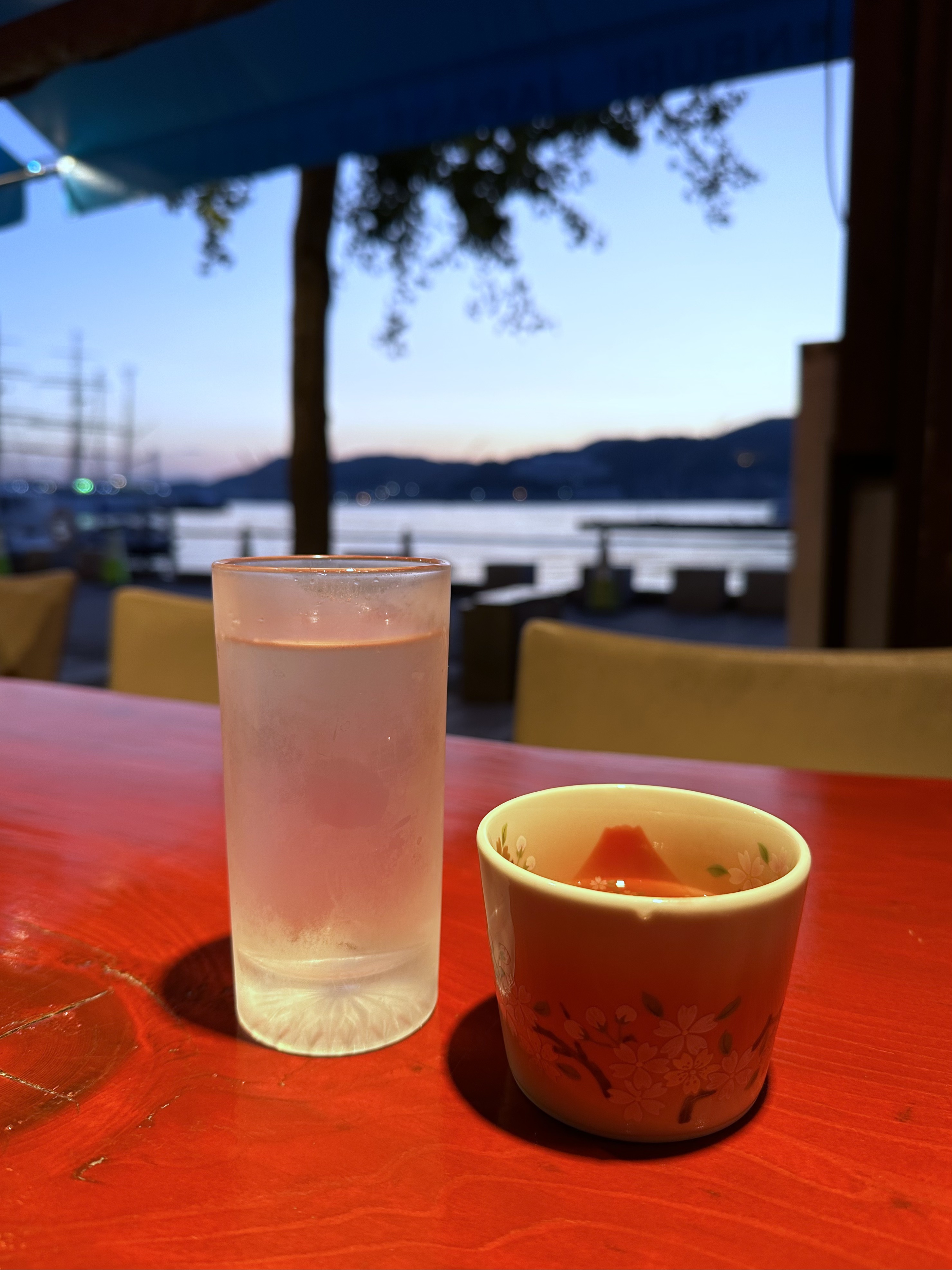 Got myself a glass of sake and tea to start. Guess which is which. lol