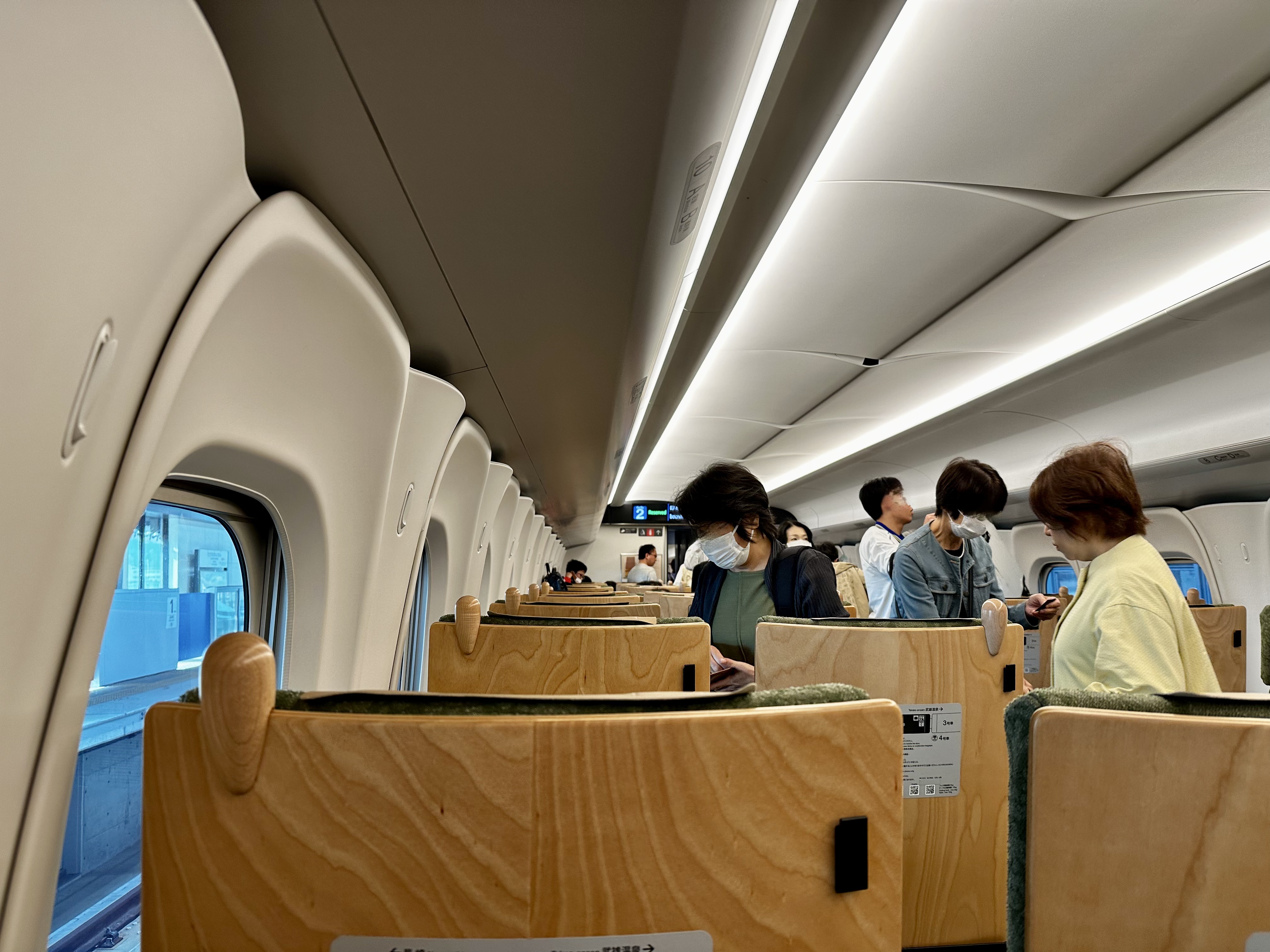 The interior of the train was rather modern yet with warmth. I say, very Japanese. lol