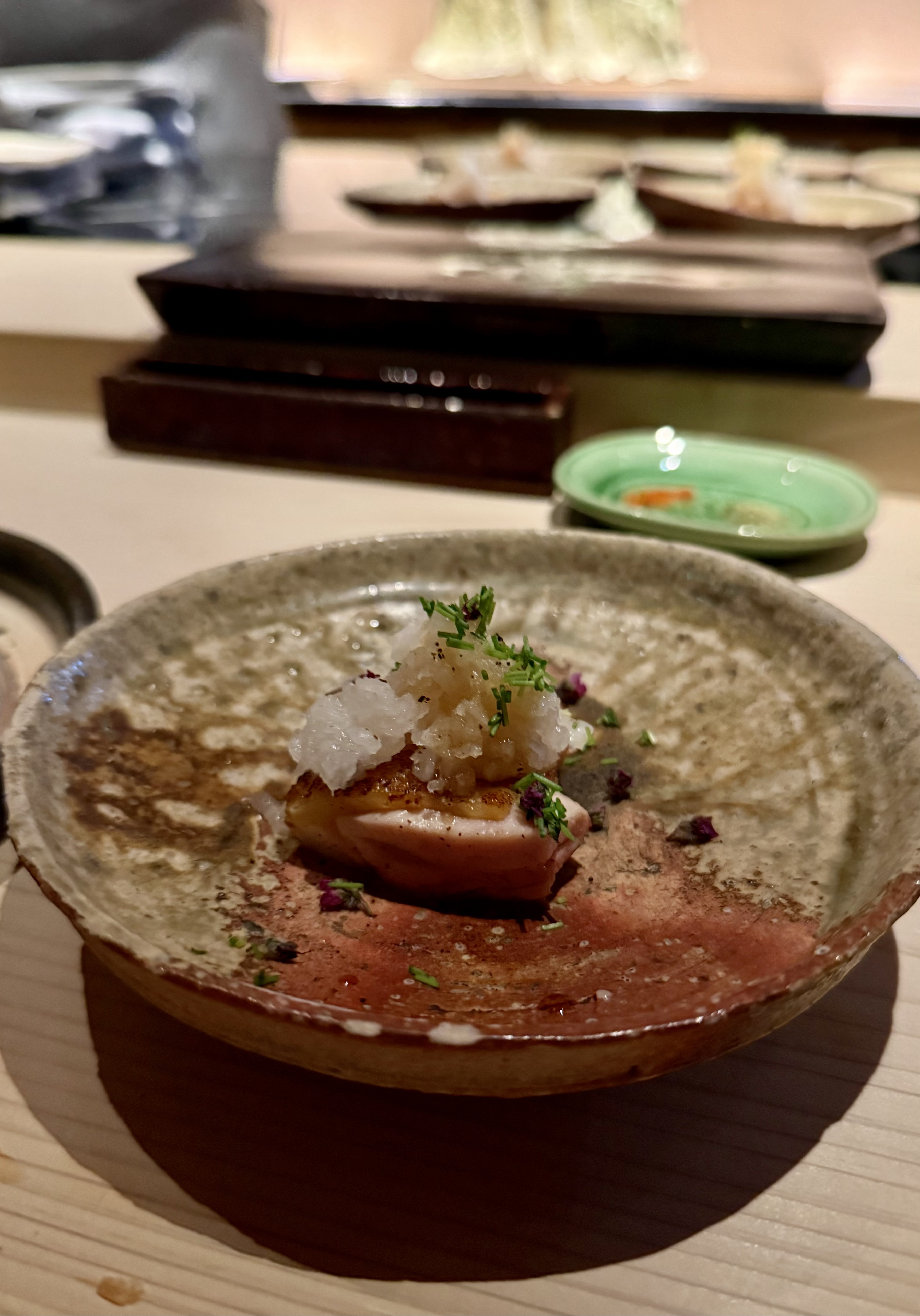 I really wanted to try a Yakitori place in Tokyo so I found Yakitori Shinohara online. Located in Nishiazabu and priced at ¥16,000 for the chef’s tasting course, there is only one menu available. I went for the earlier seating at 5.30pm cos I wanted to rest earlier for the evening but to my surprise, everyone reached very early and were just waiting outside in the cold even before the restaurant opened