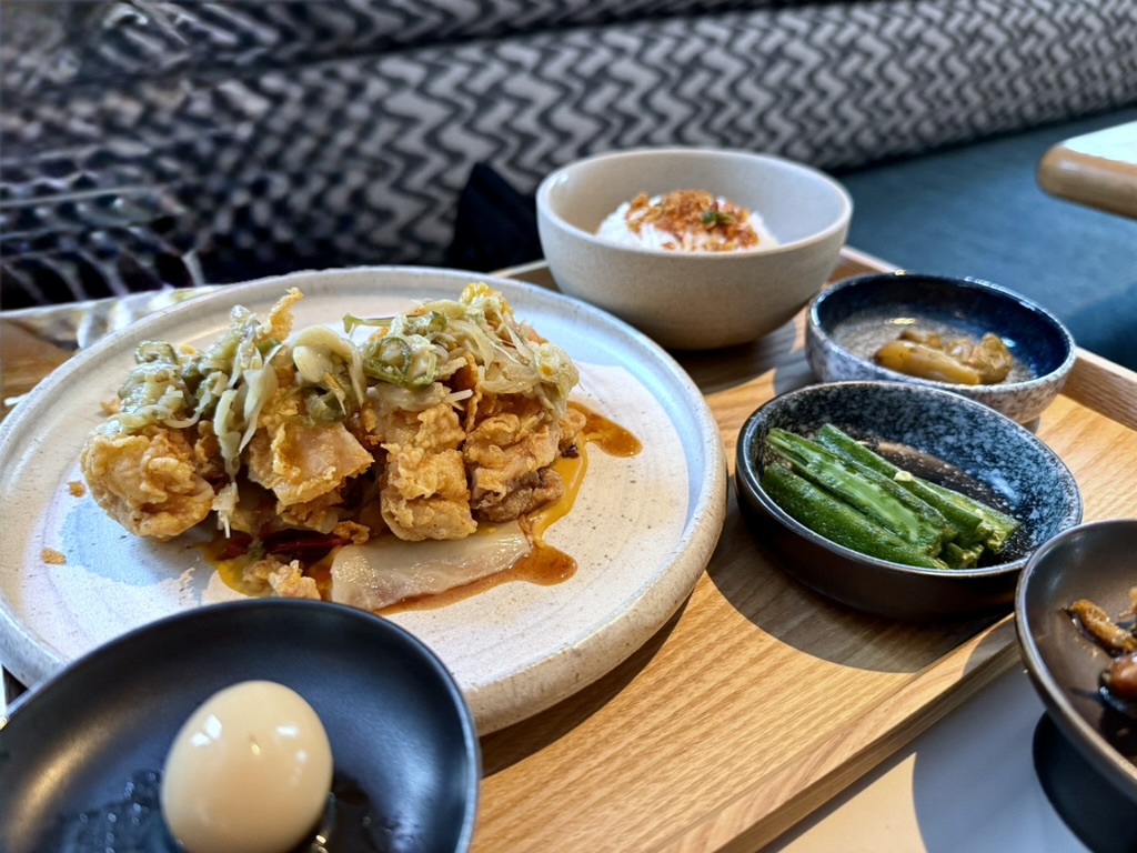 I was a little confused by this fried chicken. Not sure if it was supposed to remind me of Nasi Lemak or Hainanese curry rice for that yellow curry sauce