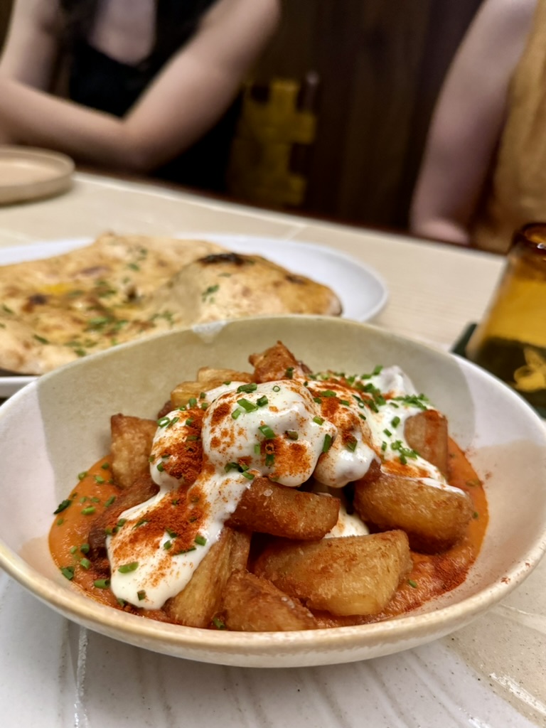 And so we had a tandoor bread which in my opinion can be a little more flavourful. It tasted like a very normal piece of bread but it actually went well with the garlic cream sauce served with the cassava bravas