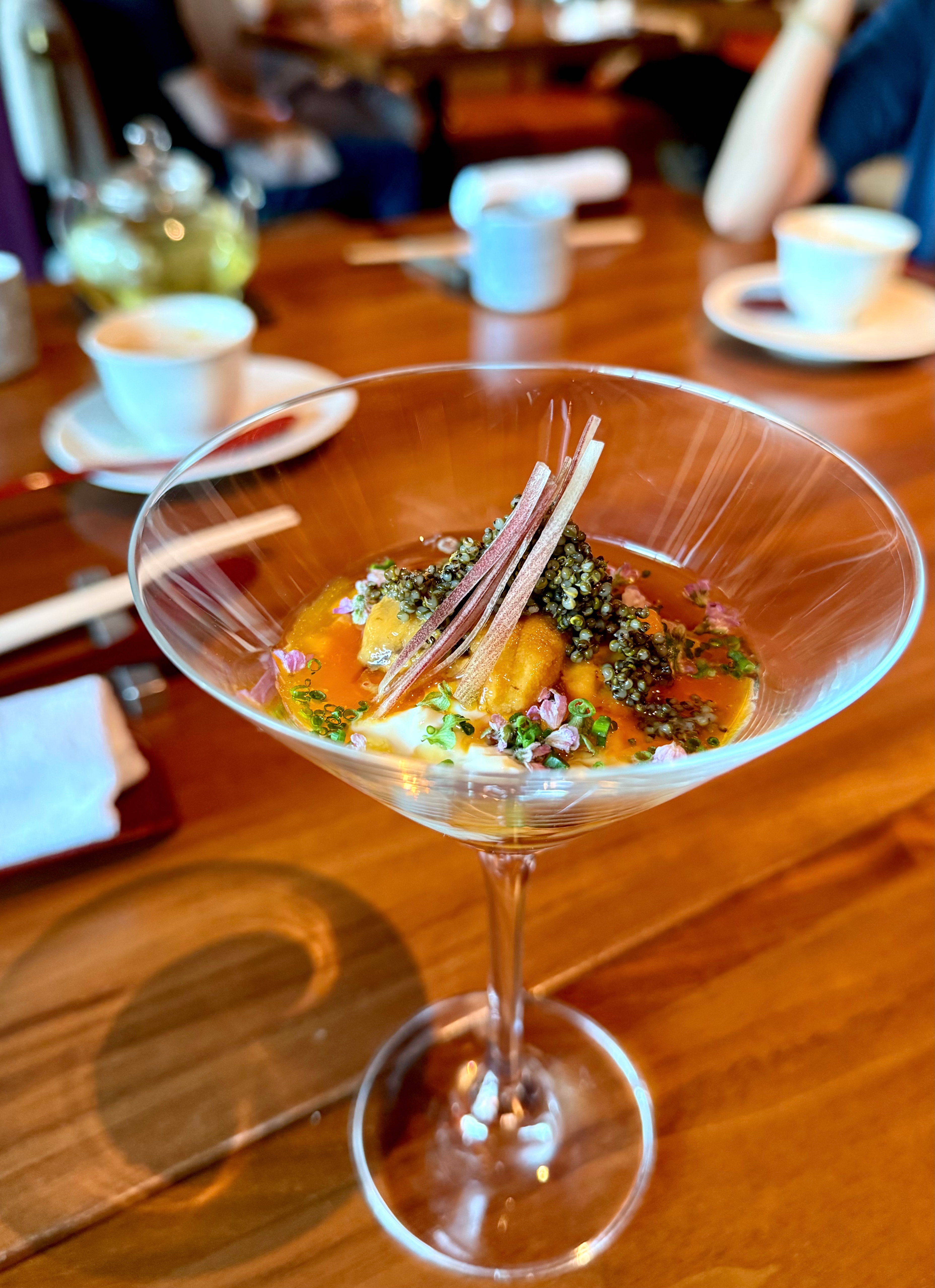 Fresh Bean Curd Skin From Kyoto with Hokkaido Sea Urchin, Mountain Caviar