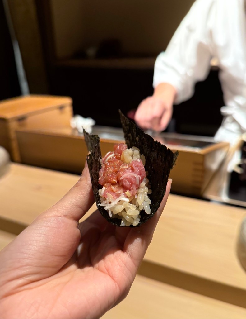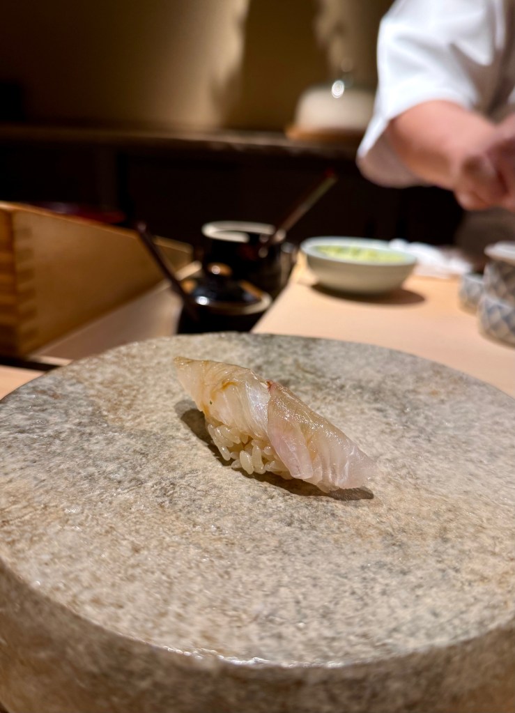 The fish was very chewy and you could taste the shiso in it. Rice temperature was good but I thought the vinegar didn’t really come through