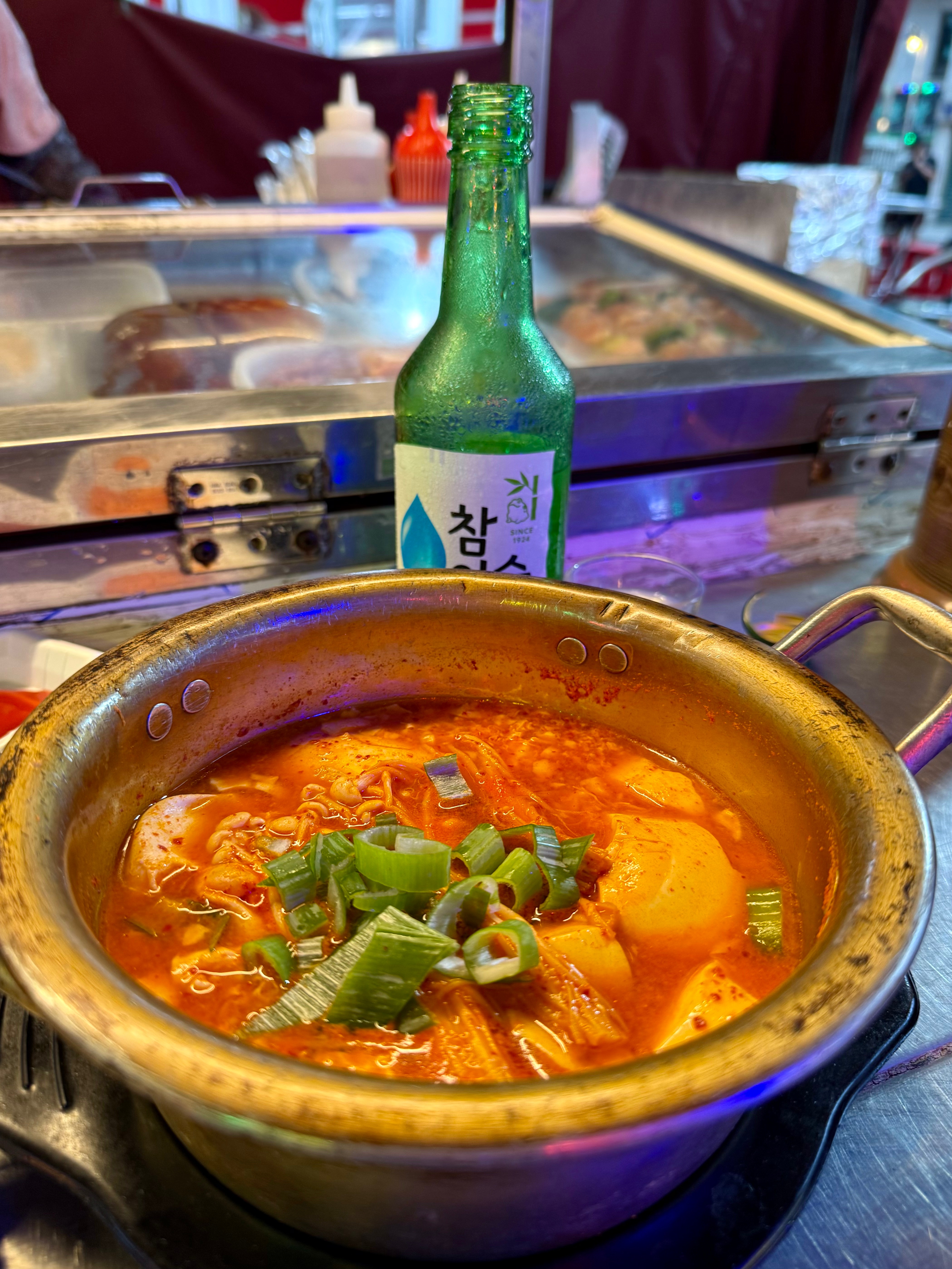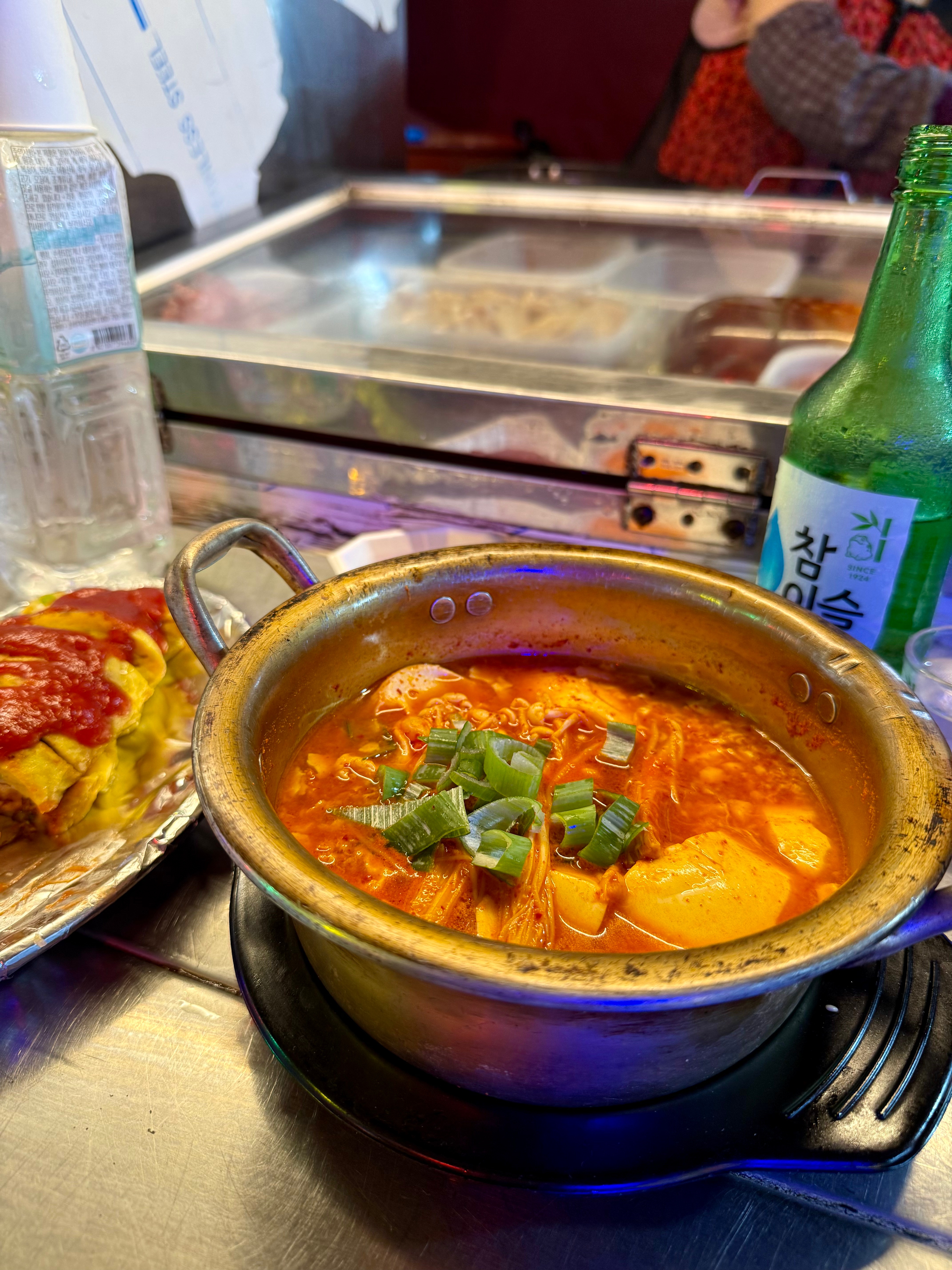 I settled on a random stall cos the ahjumma was so welcoming and there was an English menu available as well so there’s no fear of communication breakdown. So I started with an omelette and soju
