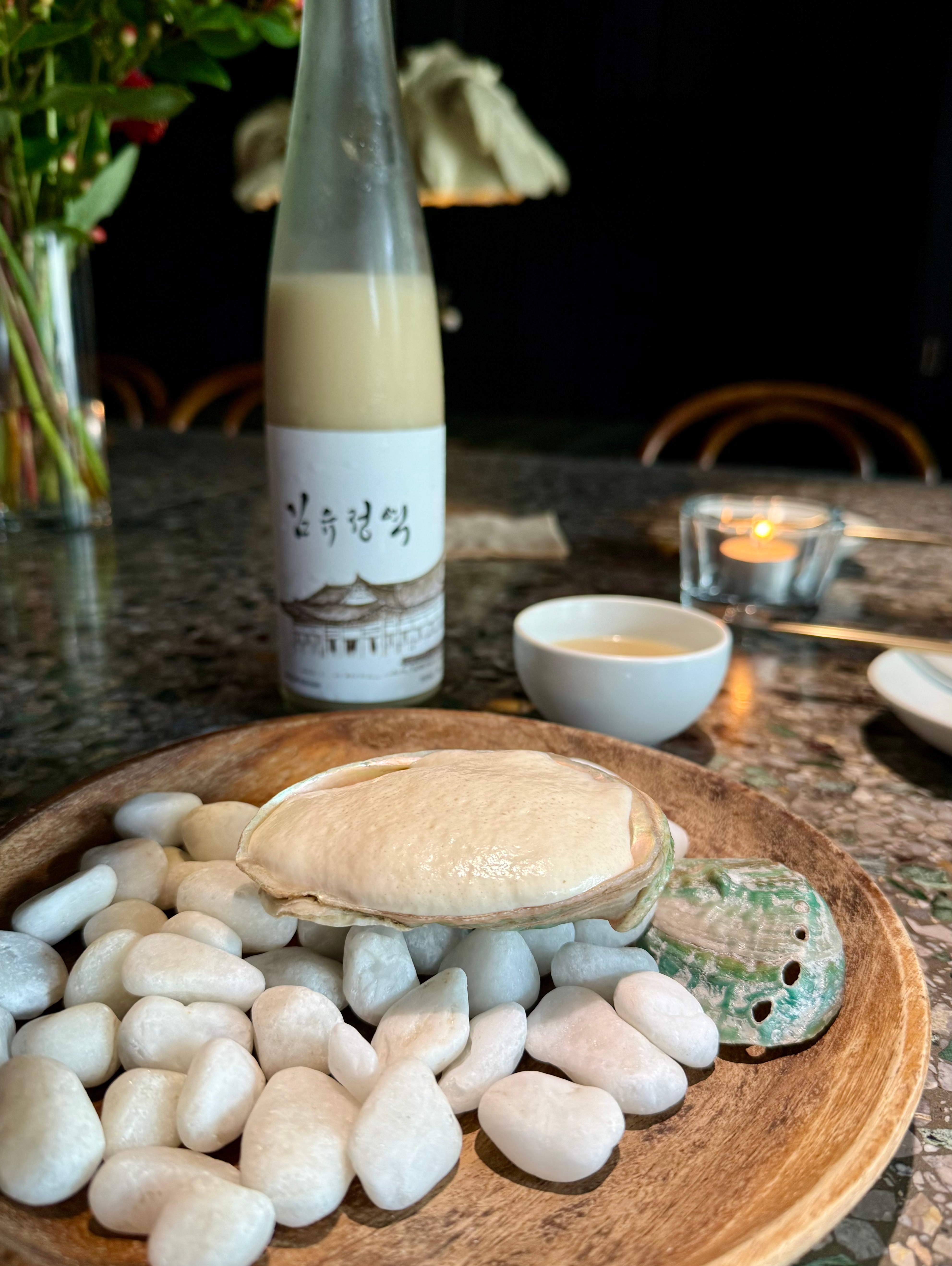 This dish had a little bit of surprise. I was expecting more abalone but I liked the yoghurt that topped it off. It was a little acidic and refreshing and it didn’t make your small bite feel heavy. Pairing it with a nutty chungju that was quite delicious