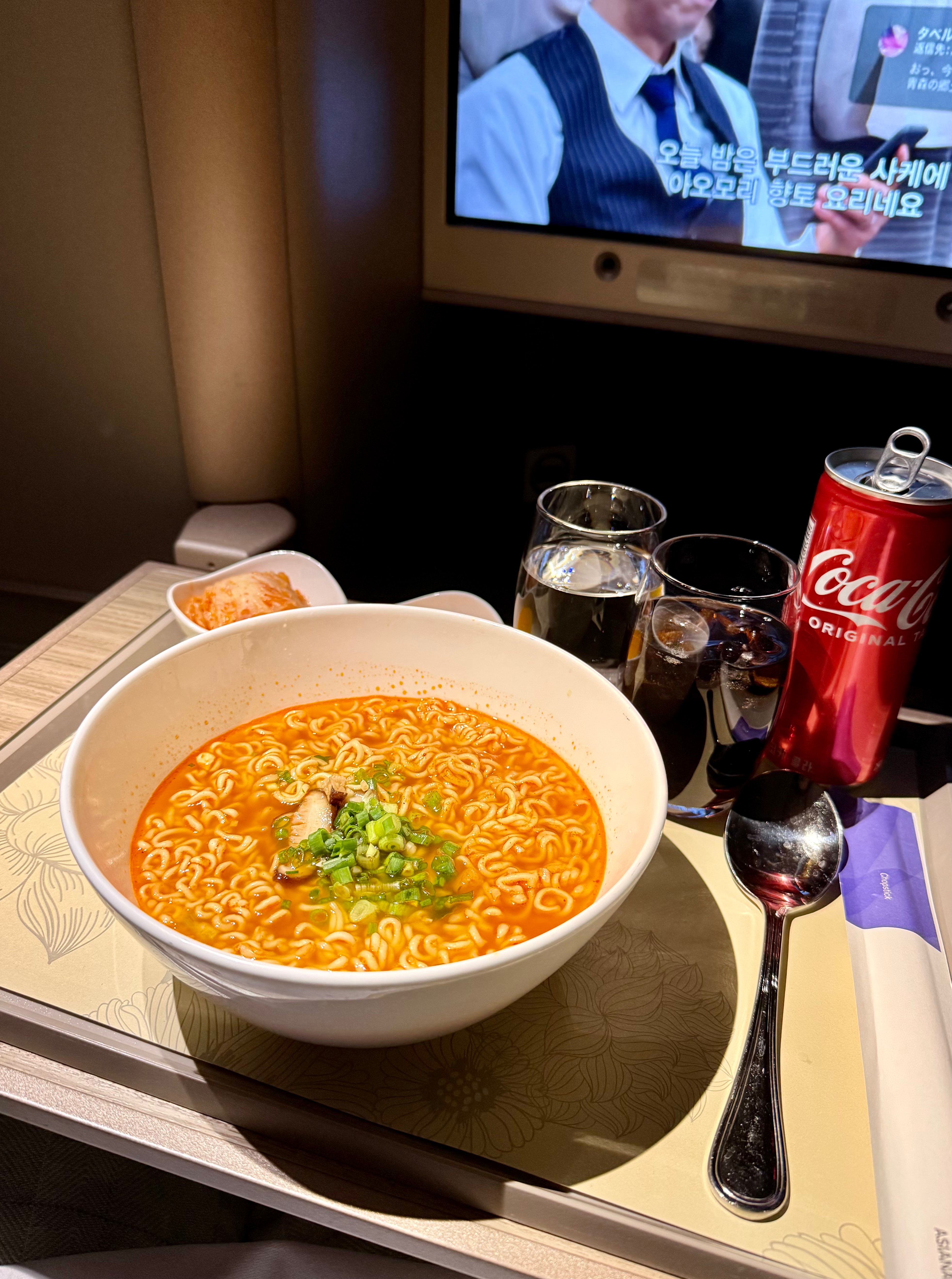 When you smell ramen on the plane, it just triggered a wave of ordering. Lol. And ramen on the plane just taste different. With a glass of coke, even better 😀