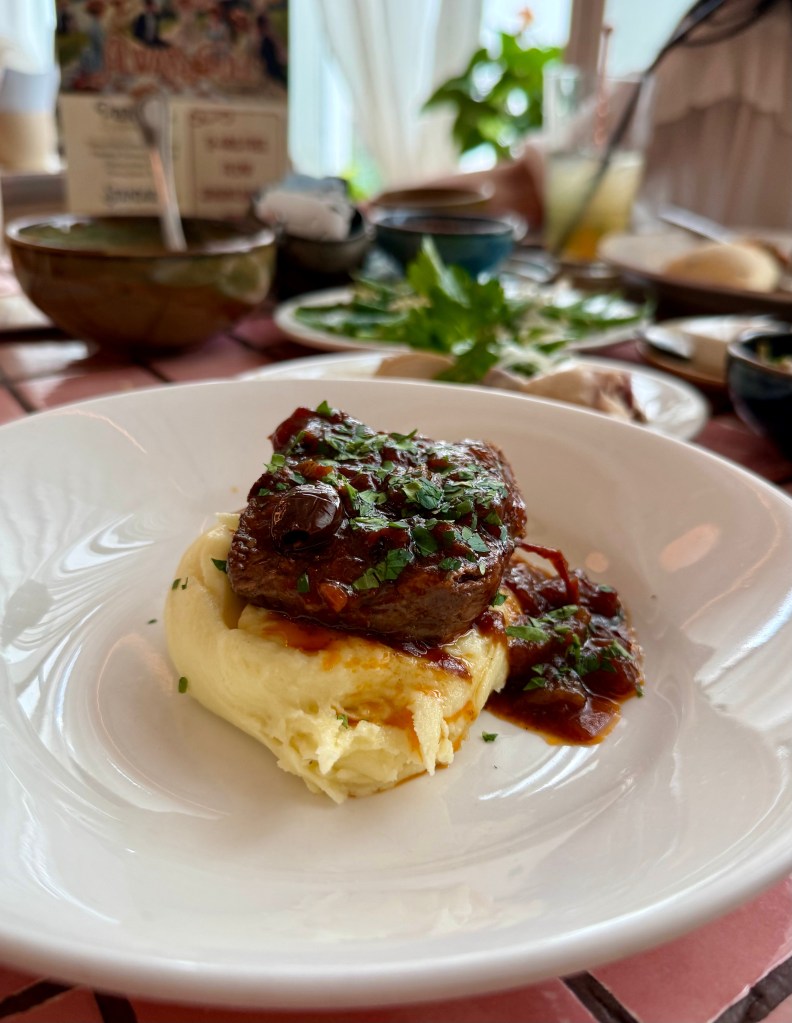 Beef Stew w Olives, Dried Orange & Red Wine, Mashed Potatoes